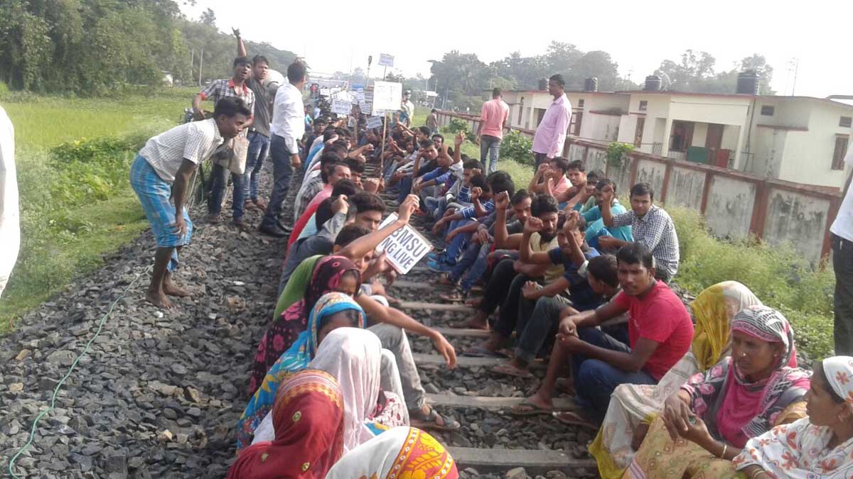 ৰঙিয়া, ২৬ অক্টোবৰঃ এবিএমছুৰ সভাপতি লাফিকুল ইছলাম আহমেদৰ হত্যাকাৰীক শীঘ্ৰে গ্ৰেপ্তাৰৰ দাবীত ৰঙিয়াৰ খন্দিকৰত এবিএমছুৰ তামুলপুৰ জিলা সমিতিয়ে তীব্ৰ প্ৰতিবাদ সাব্যস্ত কৰে৷ প্ৰতিবাদকাৰীসকলে লাফিকুলক হত্যাৰ মূল অভিযুক্তক শীঘ্ৰে গ্ৰেপ্তাৰৰ দাবীত ৰেলপথ অৱৰোধ কৰে৷ এবিএমছুৰ হেজাৰ হেজাৰ প্ৰতিবাদকাৰীয়ে ৰেলপথৰ ওপৰত বহি অসম চৰকাৰ হায় হায়, এছপি ৰাজেন সিঙক শীঘ্ৰে নিলম্বন কৰক, লাফিকুলক হত্যা কৰা মূল অভিযুক্তত শীঘ্ৰে গ্ৰেপ্তাৰ কৰক আদি শ্ল’গানেৰে পৰিবেশ উত্তাল কৰি তোলে। প্ৰতিবাদস্থলীত যাতে কোনো অপ্ৰীতিকৰ পৰিস্থিতি সৃষ্টি নহয় তাৰবাবে ব্যাপক সংখ্যক আৰক্ষী, অৰ্ধ সামৰিক বাহিনী, ৰেল সুৰক্ষা বাহিনীক মোতায়ন কৰা হয়। খন্দিকৰত ৰেলপথ অৱৰোধৰ বাবে ৰঙিয়া নাহৰলগুণ, মুৰ্কচেলেং, ডেকাৰগাওঁ উজনি নামনি অভিমুখী বহু ট্ৰেইন বাতিল কৰা হয়৷ আনহাতে ওদালগুৰিত ৰঙিয়া অভিমুখী শতাব্দী এক্সপ্ৰেছখন বহু সময় ধৰি আৱদ্ধ হৈ থাকে।