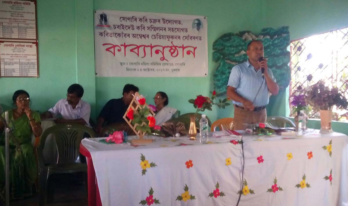 বৰহাট, ৪ অক্টোবৰঃ সদৌ অসম কবি সন্মিলনৰ অন্তৰ্গত সোণাৰি কবি চক্ৰৰ উদ্যোগত আৰু চৰাইদেউ জিলা কবি সন্মিলনৰ সহযোগত সোণাৰিত কবিতা কোঁৱৰ অম্বেশ্বৰ চেতিয়া ফুকনৰ স্মৃতি দিৱস পালন কৰা হয়। সোণাৰি কবি চক্ৰৰ সভাপতি ইন্দিৰা কাকতিয়ে পুৱা সন্মিলনৰ পতাকা উত্তোলন আৰু চৰাইদেউ জিলা কবি সন্মিলনৰ সভাপতি সিদ্ধাৰ্থ দত্তই স্মৃতি তৰ্পণ কৰে৷ ইয়াৰ পিছতেই চৰাইদেউৰ উপায়ুক্ত বিবেকানন্দ ফুকনে কবিতা কোঁৱৰ অম্বেশ্বৰ চেতিয়া ফুকন সোঁৱৰণি কাব্যনুষ্ঠানটো উদ্বোধন কৰে। কাব্যনুষ্ঠানটোত নিৰ্দিষ্ট বক্তা হিচাবে বিশিষ্ট কবি নিবেদিতা ফুকন উপস্থিত থাকে। কাব্যনুষ্ঠানটো পৰিচালনা কৰে নাজিৰা মহাবিদ্যালয়ৰ অসমীয়া বিভাগৰ প্ৰৱক্তা তথা বিশিষ্ট কবি ৰাজীৱ বৰাই৷ অনুষ্ঠানটোত চৰাইদেউ, ডিব্ৰুগড়, যোৰহাট, শিৱসাগৰকে ধৰি অসমৰ বিভিন্ন জিলাৰ প্ৰায় অৰ্ধ শতাধিক নবীন প্ৰবীন কবিয়ে অংশগ্ৰহণ কৰি কবিতা পাঠ কৰে৷