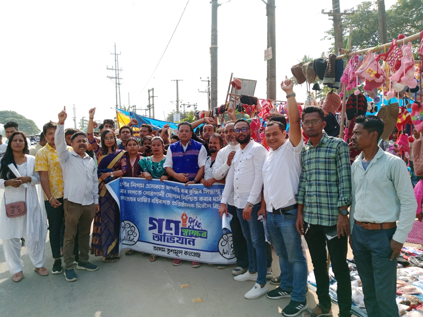 অসম তৃণমূল কংগ্ৰেছৰ নেতৃত্বত বিজেপি নেতৃত্বাধীন ৰাজ্য চৰকাৰে অপশাসন চলাই থকাৰ অভিযোগত ধাৰাবাহিক আন্দোলন কাৰ্যসূচী অব্যাহত আছে। আকাশলংঘী মূল্যবৃদ্ধি, বৰ্ধিত পৌৰকৰৰ বিৰুদ্ধাচৰণ আৰু মহানগৰবাসীৰ বাবে নিয়মীয়া বিশুদ্ধ খোৱাপানীৰ যোগানৰ দাবীত যোৱা ৩ নৱেম্বৰৰ পৰা আৰম্ভ হোৱা গণ স্বাক্ষৰ প্ৰতিবাদী কাৰ্যসূচীৰ অংশ স্বৰূপে বুধবাৰে মহানগৰীৰৰ লখৰাস্থিত সাওকুঁছি বজাৰত তৃণমূল কংগ্ৰেছৰ নেতৃবৰ্গই প্ৰতিবাদী কাৰ্যসূচী তথা গণ স্বাক্ষৰত অংশ লয়।