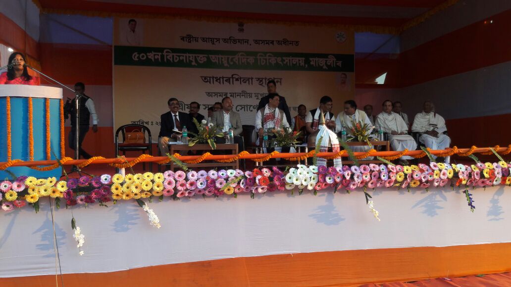 মাজুলী, ২৮ অক্টোবৰ: মাজুলী জিলাৰ অন্তৰ্গত উজনি মাজুলীৰ শ্ৰীৰাম গাঁও পঞ্চায়তৰ শ্ৰীৰাম চাপৰিত আজি বিয়লি মাজুলীৰ স্থানীয় বিধায়ক তথা মুখ্যমন্ত্ৰী সৰ্বানন্দ সোনোৱালে অসমৰ দ্বিতীয়খন আয়ুবেদিক চিকিৎসালয়ৰ আধাৰশিলা স্থাপন কৰে। ১০.৫ কোটি টকাৰ ব্যয় সাপেক্ষে প্ৰায় ৪০ বিঘা মাটিত নিৰ্মাণ হ’ব লগা এই চিকিৎসালয়খনে মাজুলীৰ এক দীৰ্ঘদিনীয়া সমস্যাৰ অৱসান ঘটাই মাজুলীত এক নতুন দিগন্তৰ সুচনা কৰিব। এই গাম্ভীৰ্যপূৰ্ণ অনুষ্ঠানত স্বাস্থ্য বিভাগৰ সচিব সমীৰ কুমাৰ সিনহা, আয়ুসৰ সঞ্চালক বৰ্ণালী ডেকা, লক্ষিমপুৰ সমষ্টিৰ সাংসদ প্ৰদান বৰুৱা, টংখাঙৰ বিধায়ক বিমল বৰাকে ধৰি মাজুলীৰ কেওখন সত্ৰৰ সত্ৰাধিকাৰ উপস্থিত থাকে।