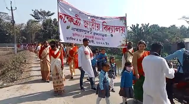 শনিবাৰে বৰক্ষেত্ৰী জাতীয় বিদ্যালয়ৰ প্ৰতিষ্ঠা দিৱস উপলক্ষে এক বৰ্ণাঢ্য সাংস্কৃতিক শোভাযাত্ৰা উলিওৱা হয়। সম্পূৰ্ণ ক’ভিড প্ৰট’কল মানি এই সাংস্কৃতিক শোভাযাত্ৰা উলিয়াই বিদ্যালয়খনৰ কৰ্তৃপক্ষই। এই বৰ্ণাঢ্য সাংস্কৃতিক শোভাযাত্ৰাৰ উদ্বোধন কৰে বিদ্যালয়খনৰ অৱসৰপ্ৰাপ্ত প্ৰধান শিক্ষক তৰুণ আলীয়ে।