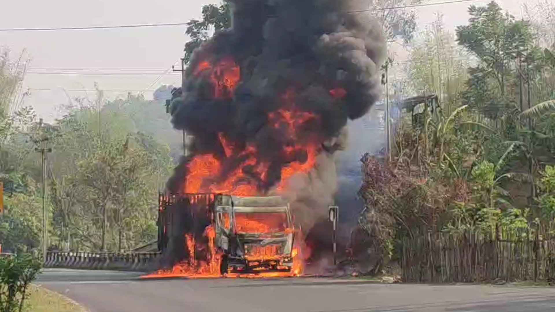 সোমবাৰে দুপৰীয়াৰ ভাগত এক ভয়ংকৰ অগ্নিকাণ্ডৰ ঘটনা সংঘটিত হয়। ৰাজপথৰ ওপৰতে হঠাৎ দাও দাওকৈ জ্বলি উঠে এখন ট্ৰাক। ৰাজপথৰ ওপৰতে এখন ট্ৰাক দাও দাওকৈ জ্বলি উঠাৰ দৃশ্য আছিল অতি ভয়াবহ। এই দৃশ্য দেখি এক আতংকময় পৰিৱেশ সৃষ্টি হয়। অগ্নিকাণ্ডত কথমপি প্ৰাণ ৰক্ষা পৰে ট্ৰাকখনৰ চালক আৰু হেণ্ডিমেনজনৰ। ৰাইজে আৰক্ষী আৰু অগ্নি নিৰ্বাপক বাহিনীক খবৰ দিয়াত ঘটনাস্থলীত আৰক্ষী আৰু অগ্নি নিৰ্বাপক বাহিনীৰ দল উপস্থিত হৈ জুই নিৰ্বাপন কৰে।