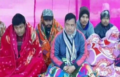 টীয়কৰ ৩৭নং ৰাষ্ট্ৰীয় ঘাইপথৰ দাঁতিত ঠেৰেঙা লগা জাৰত কাৰ বিৰুদ্ধে প্ৰতিবাদ কৰি আমৰণ অনশন কেইজনমান যুৱকৰ।