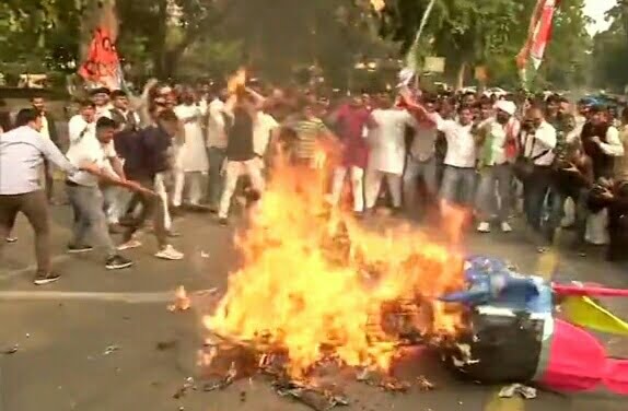 শ শ প্ৰতিবাদকাৰীয়ে পুত্তলিকা দাহ কৰাৰ উপৰিও বিজেপি বিৰোধী বিভিন্ন শ্লো গানেৰে বিজেপি নেতৃত্বাধীন চৰকাৰ গঠনৰ বিৰুদ্ধে প্ৰতিবাদ সাব্যস্ত কৰে।