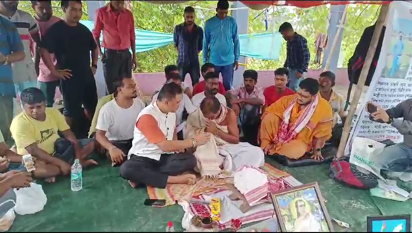 বিগত এঘাৰ দিন ধৰি গুৱাহাটীৰ চচলৰ প্ৰতিবাদস্থলীত ক’ভিড চাফাই কৰ্মী সকলে অনশনৰ কাৰ্যসূচী চলাই আছিল যদিও চৰকাৰৰ তৰফৰ পৰা বিশেষ কোনো মন্ত্ৰী তথা উচ্চপদস্থ বিষয়াই কোনো খবৰ নলৈ এওঁলোকক অৱজ্ঞা কৰাৰ অভিযোগ উত্থাপন হৈছে। অৱশেষত আজি দুপৰীয়া ১২ বজাত একালৰ আন্না হাজাৰেৰ সহযোগী তথা “ৰাষ্ট্ৰীয় টিম আন্নাৰ ক’ৰ কমিটিৰ ৰাষ্ট্ৰীয় সদস্য,” অসমৰ ৰাষ্ট্ৰীয় পৰ্যায়ৰ মানৱ অধিকাৰ তথা সমাজ কৰ্মী ডঃ দিব্যজ্যোতি শইকীয়াই অনশনকাৰীক পানী, অ’ আৰ এছ আৰু আপেল আদি খুৱাই সাময়ীকভাৱে অনশন ভংগ কৰায়।