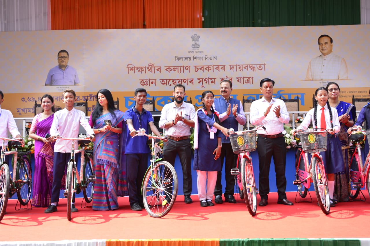 চৰকাৰী আৰু প্ৰাদেশিকৃত বিদ্যালয়ত নৱম শ্ৰেণীত অধ্যয়নৰত ছাত্ৰ-ছাত্ৰীৰ বাবে ৰূপায়িত আঁচনিখনৰ অধীনত কামৰূপ মহানগৰ জিলাৰ মুঠ ৮৬০৮ গৰাকী শিক্ষাৰ্থীক চাইকেল দিয়াৰ ব্যৱস্থা কৰা হৈছে৷ জিলা আয়ুক্ত পল্লৱ গোপাল ঝাই আদৰণি ভাষণ দিয়া সভাখনত মুখ্য অতিথি হিচাপে উপস্থিত থাকি প্ৰদান কৰা ভাষণত মন্ত্ৰী চন্দ্ৰ মোহন পাটোৱাৰীয়ে কয়, ‘মুখ্যমন্ত্ৰীয়ে অসমৰ সৰ্বাংগীন উন্নতিৰ লক্ষ্যৰে সকলো শ্ৰেণীৰ লোকৰ বাবে আঁচনি লৈছে৷ ছাত্ৰ-ছাত্ৰীসকলৰ বাবেও বহুকেইখন আঁচনি লোৱা হৈছে৷