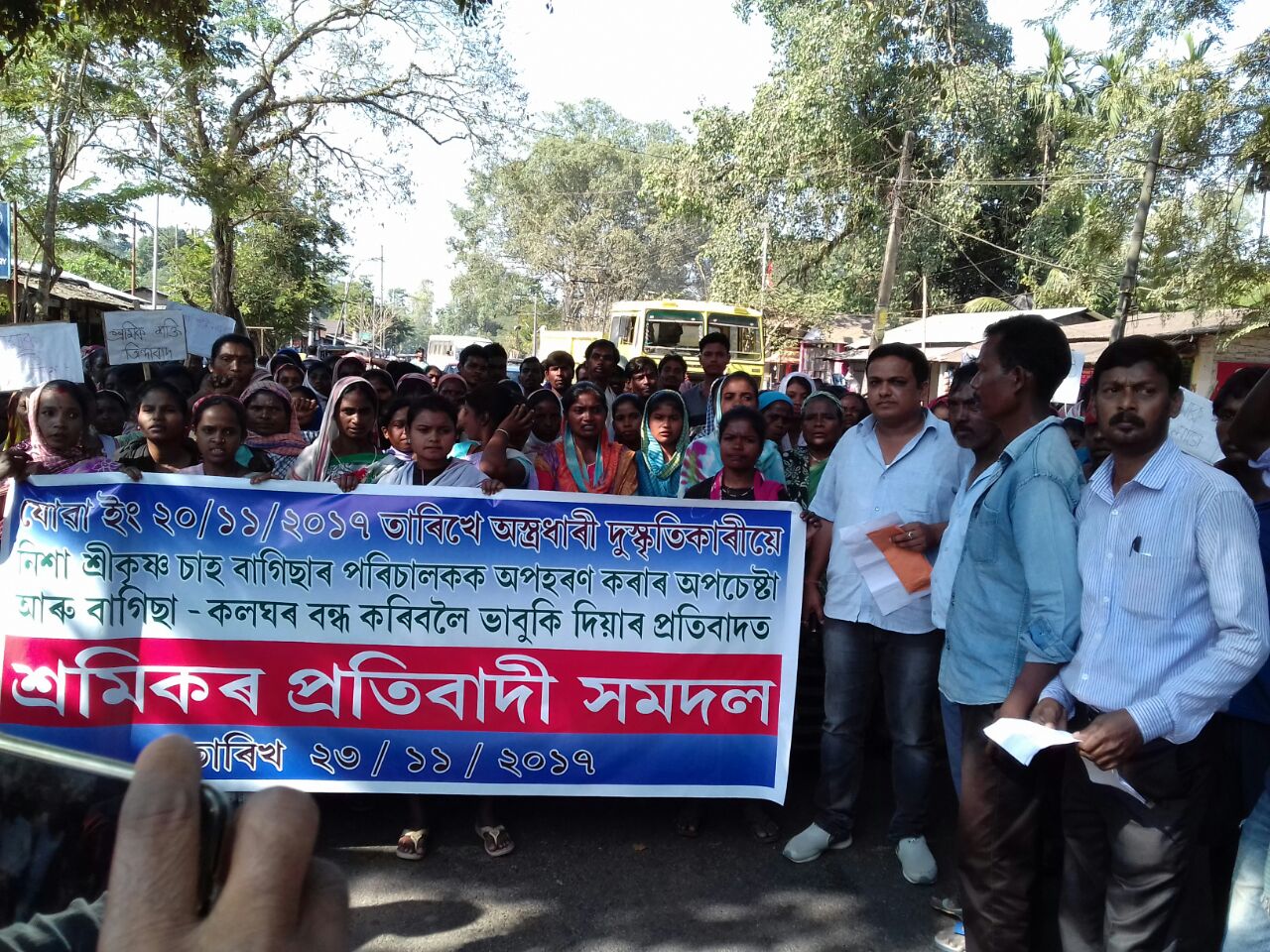 ডিগবৈ, ২৩ নৱেম্বৰ: ডিগবৈত ৩৮ নং ৰাষ্ট্ৰীয় ঘাই পথ অৱৰোধ। সন্ত্ৰাসবাদৰ বিৰুদ্ধে এই প্ৰতিবাদ । তিনিদিনৰ পূৰ্বে শ্ৰী কৃষ্ণ চাহ বাগিচা পৰিচালক উমেশ ত্যাগীক অপহৰণৰ চেষ্টা আৰু বাগিচা কলঘৰ বন্ধ কৰাৰ ভাবুকি প্ৰদানৰ বাবে অসম চাহ মজদুৰ সংঘ মাৰ্ঘেৰিটা শাখা সমিতি আৰু বাগিচা শ্ৰমিকে প্ৰতিবাদ সাব্যস্ত কৰে। সন্ত্ৰাসবাদীৰ বিৰুদ্ধে বিভিন্ন শ্ল’গানেৰে উত্তাল কৰে ৰাজপথ। চাহ মজদুৰ সংঘৰ মাৰ্ঘেৰিটা শাখাৰ সভাপতি গৌতম ধানোৱাৰৰ নেতৃত্বত বাগিচাখনৰ পৰা এক সমদল উলিয়াই প্ৰায় আঠ কিলোমিটাৰ পথ এক প্ৰতিবাদী শোভাযাত্ৰা উলিয়াই টিংৰাইত এই পথ অৱৰোধ কৰে।