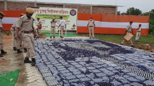 নগাঁও : প্রায় ৩৬ কোটি টকাৰ জব্দকৃত ড্ৰাগছ বিনষ্টকৰণৰ বাবে দেওবাৰে নগাঁও জিলাৰ বঢ়মপুৰৰ ৰঙাজান ষ্টেডিয়ামত আয়ােজিত এক কাৰ্যসূচীত ভাষণ প্রদান কৰি মুখ্যমন্ত্রী ড° হিমন্ত বিশ্ব শৰ্মাই কয় যে ৰাজ্যখন ‘সােণালী ত্রিভুজ’ৰ ওচৰত থকাৰ বাবে ই দীর্ঘদিন ধৰি দেশৰ আন প্রান্তলৈ ড্ৰাগছ সৰবৰাহৰ পৰিবহণ পথ হিচাপে ব্যৱহৃত হৈ আহিছে। ড্রাগছ সৰবৰাহকাৰীসকলৰ বিৰুদ্ধে কাম কৰি চৰকাৰে কেৱল ড্ৰাগছ ব্যৱসায়ৰ ওপৰত প্ৰভাৱ পেলােৱাই নহয়, ৰাজ্যখনৰ মাজেৰে দেশৰ আন প্রান্তলৈ ড্ৰাগছৰ সৰবৰাহাে বন্ধ কৰিবলৈ সক্ষম হৈছে।