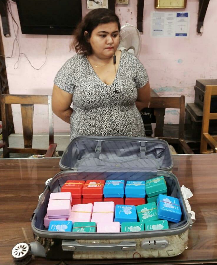 আবৃত্তি কৰ্মকাৰ নামৰ যুৱতীগৰাকীৰ ঘৰ পশ্চিম বংগৰ নাডায়াত। ১২৪২৩ নামনিমুৱা ৰাজধানী এক্সপ্ৰেছৰ বি ১০ ছিট নম্বৰ ২৫ৰ পৰা জব্দ কৰা হয় হেৰ’ইনখিনি । গুৱাহাটীৰ পৰা দিল্লীলৈ নিয়াৰ উদ্দেশ্যে যুৱতীগৰাকীয়ে আনিছিল হেৰ’ইনখিনি।