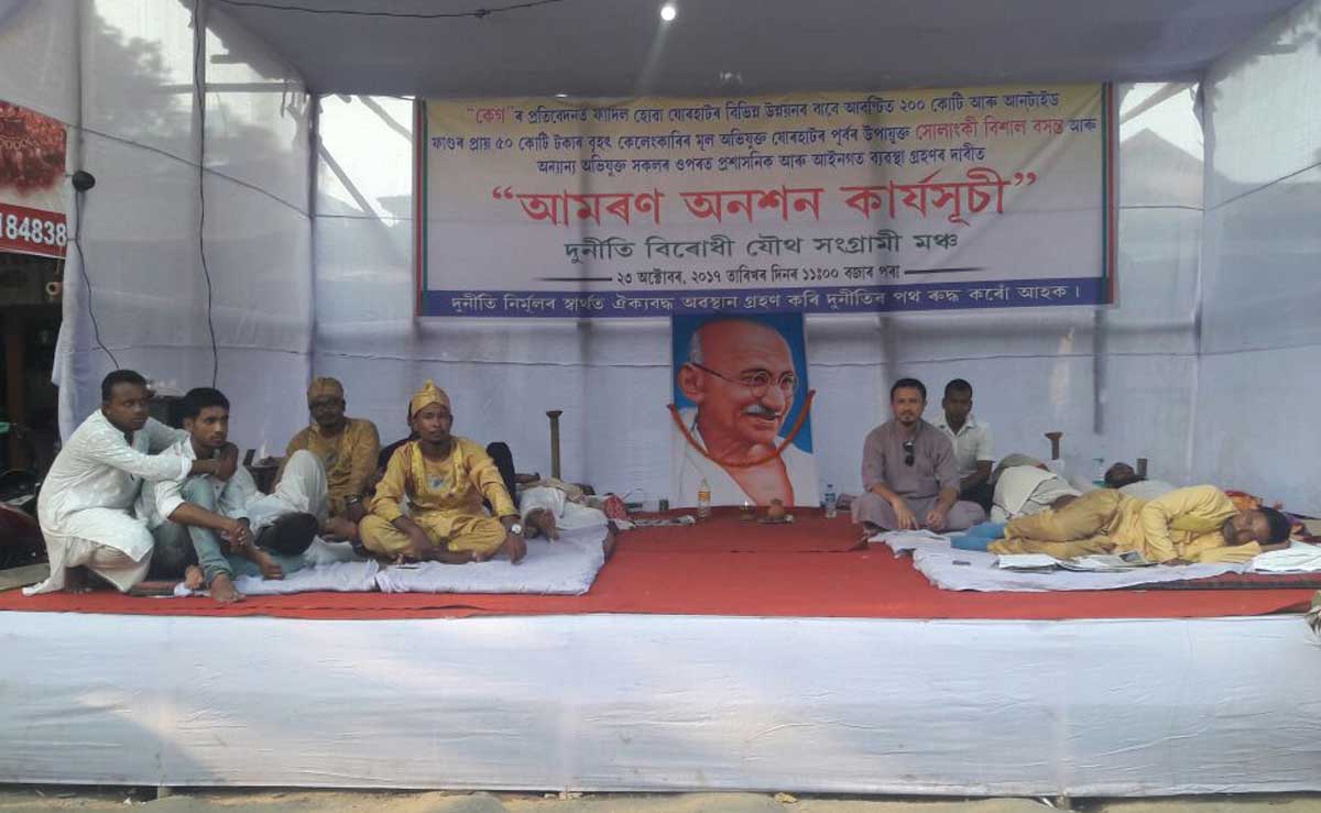 যোৰহাট, ২৪ অক্টোবৰঃ যোৰহাটৰ উন্নয়নৰ বাবে আৱণ্টিত আনটাইড ফাণ্ড কেলেংকাৰীৰ মূল অভিযুক্তৰ বিৰুদ্ধে চৰকাৰে প্ৰশাসনিক আৰু আইনগত ব্যৱস্থা গ্ৰহণ কৰাৰ দাবীত সোমবাৰৰ পৰা দুৰ্নীতি বিৰোধী যৌথ সংগ্ৰামী মঞ্চই আমৰণ অনশন কাৰ্যসূচী ৰূপায়ন কৰিছে। উল্লেখ্য যে, যোৰহাটৰ উন্নয়নৰ বাবে বিভিন্ন শিতানৰ আৱন্টিত ২০০ কোটি টকা আৰু আনটাইড ফাণ্ডৰ ৫০ কোটি টকাৰ ব্যাপক কেলেংকাৰী সংঘটিত হোৱাৰ তথ্য কেগৰ প্ৰতিবেদনত ফদিল হোৱাৰ পিছত কেলেংকাৰীৰ গোচৰত অভিযুক্ত পাঁচজনকৈ বিষয়া, কৰ্মচাৰী, ঠিকাদাৰ জেলত থাকিবলগীয়া হোৱাৰ পাছতো একে গোচৰতে অভিযুক্ত যোৰহাটৰ পূৰ্বৰ উপায়ুক্তৰ ওপৰত প্ৰশাসনিক আৰু আইনগত ব্যৱস্থা গ্ৰহণ নকৰাত ক্ষোভ প্ৰকাশ কৰিছে মঞ্চৰ কৰ্মকৰ্তাই। মুখ্যমন্ত্ৰী সৰ্বানন্দ সোণোৱালে উক্ত কেলেংকাৰীত জড়িত সোলাংকী বিশাল বসন্তৰ ওপৰত প্ৰশাসনিক আৰু আইনগত ব্যৱস্থা গ্ৰহণ কৰাৰ লগতে সোলাংকীৰ দুৰ্নীতিৰ তদন্তৰ ক্ষেত্ৰত শূন্য সহনশীলতা গ্ৰহণ কৰিবলৈ মঞ্চই চৰকাৰক আহ্বান জনাইছে। এই প্ৰতিবাদী কাৰ্যসূচীত আটাছু, সদৌ অসম চুতীয়া ছাত্ৰ সন্থা, অনুসূচিত জাতি ছাত্ৰ সন্থাকে ধৰি প্ৰায় ৯টা সংগঠনে অংশগ্ৰহণ কৰে৷