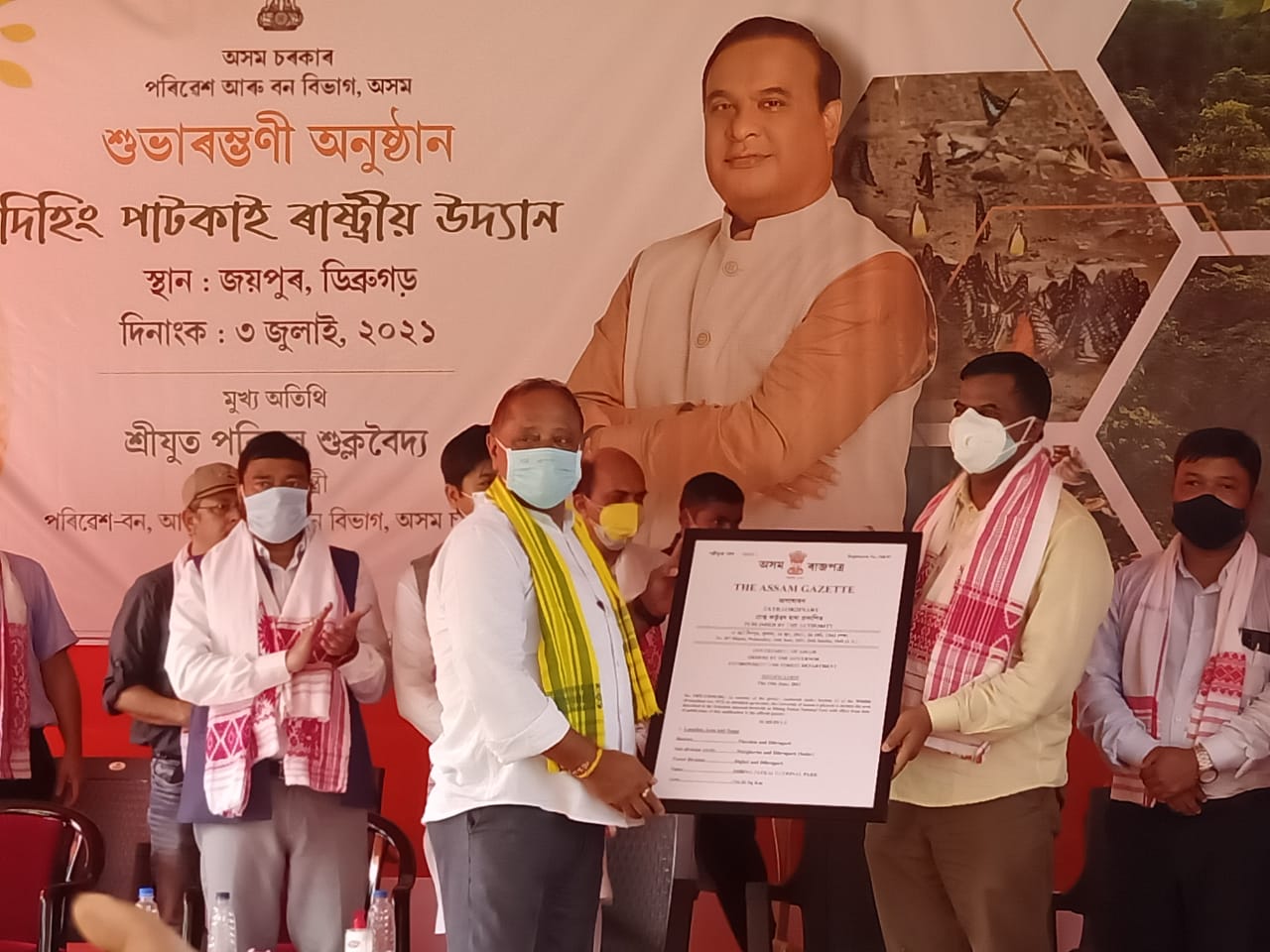 পৰিৱেশ আৰু বন মন্ত্ৰী, পৰিমল শুক্লবৈদ্যই শনিবাৰে আনুষ্ঠানিকভাৱে দিহিং পাটকাই ৰাষ্ট্ৰীয় উদ্যানৰ উদ্বোধন কৰে। জয়পুৰ ফৰেষ্ট আই বিত ৰাজ্যৰ সপ্তম ৰাষ্ট্ৰীয় উদ্যান হিচাপে দিহিং পাটকাইৰ উদ্বোধন কৰি মন্ত্ৰী পৰিমল শুক্লবৈদ্যই কয় যে ডিব্ৰুগড় আৰু তিনিচুকীয়া জিলাৰ লগতে সমগ্ৰ অসমৰ ইতিহাসত দিহিং পাটকাই ৰাষ্ট্ৰীয় উদ্যানৰ শুভ উদ্বোধনৰ দিন হিচাপে আজিৰ দিনটো চিৰস্মৰণীয় হৈ ৰ’ব। তেওঁ উল্লেখ কৰে যে বিগত ৫ জুনত বিশ্ব পৰিৱেশ দিৱস উপলক্ষে মুখ্যমন্ত্ৰী ড০ হিমন্ত বিশ্ব শৰ্মাই ঘোষণা কৰিছিল আৰু সেই অনুসৰি ১৫ জুনত এই সম্পৰ্কীয় আনুষ্ঠানিক প্ৰক্ৰিয়া সম্পূৰ্ণ কৰা হৈছিল। মন্ত্ৰী গৰাকীয়ে লগতে প্ৰকাশ কৰে যে এক সুদীৰ্ঘ সময়জুৰি দিহিং পাটকাইক ৰাষ্ট্ৰীয় উদ্যান হিচাপে স্বীকৃত কৰাৰ সংৰক্ষণমুখী পৰিকল্পনাই অৱশেষত বাস্তৱ ৰূপ পালে আৰু ইয়াৰ বাবে বিশেষকৈ জয়পুৰবাসী ৰাইজক আন্তৰিক ধন্যবাদ জনায়।