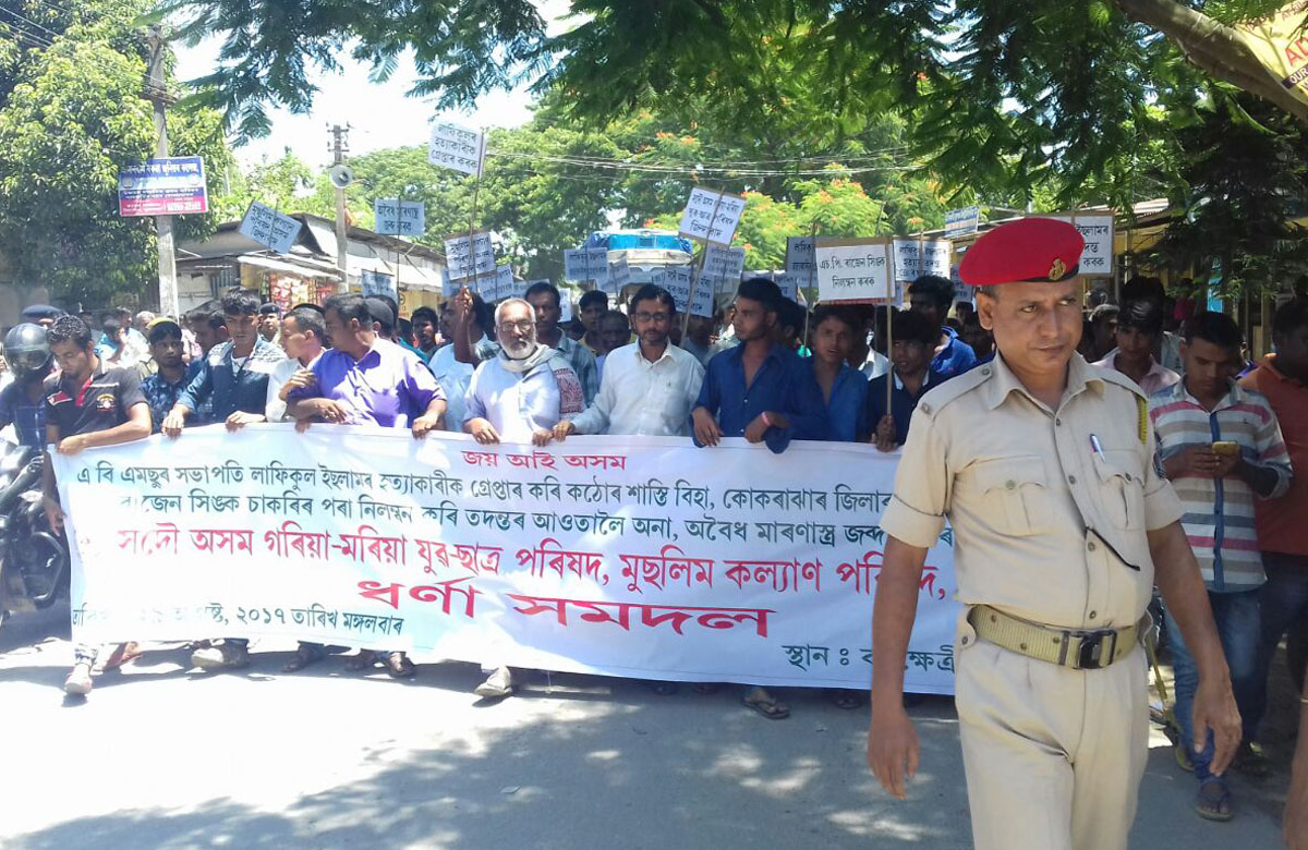 মুকালমুৱা, ২৯ আগষ্টঃ এবিএমছুৰ সভাপতি লাফিকুল ইছলামৰ হত্যাকাৰীক শীঘ্ৰে কৰায়ত্ত কৰাৰ দাবীত সদৌ অসম গৰিয়া মৰিয়া যুৱ ছাত্ৰ পৰিষদ আৰু মুছলিম কল্যাণ পৰিষদে মুকালমুৱাত উত্তাল প্ৰতিবাদ সাব্যস্ত কৰে৷ নলবাৰীৰ বৰক্ষেত্ৰী সমষ্টিৰ মুকালমুৱাত সংগঠন দুটাৰ প্ৰায় তিনি শতাধিক কৰ্মীয়ে লাফিকুল হত্যাৰ ন্যায় লাগে, কোকৰাঝাৰৰ আৰক্ষী অধীক্ষকক চাকৰিৰ পৰা নিলম্বন কৰক, অসম চৰকাৰ হায় হায়, অসম আৰক্ষী হায় হায় ধ্বনিৰে চৌদিশ উত্তাল কৰি তোলে৷ উল্লেখ্য যে, এবিএমছুৰ সভাপতি লাফিকুল ইছলামৰ হত্যাকাৰীক মুখ্যমন্ত্ৰীয়ে ২৪ ঘন্টাৰ ভিতৰত গ্ৰেপ্তাৰ কৰা হ’ব বুলি প্ৰতিশ্ৰুতি দিছিল যদিও বৰ্তমান পৰ্যন্ত লাফিকুলৰ হত্যাকাৰীক চিনাক্ত কৰিব নোৱাৰা কাৰ্যক সংগঠন দুটাই কঠোৰ ভাষাৰে সমালোচনা কৰে৷ এয়া অসম চৰকাৰৰ গৃহ বিভাগ ব্যৰ্থতা নে ইয়াৰ আঁৰত আন কোনো গভীৰ ৰহস্য জড়িত হৈ আছে সেইয়া এতিয়াও ৰহস্যৰ আৱৰ্তত বুলি সংগঠন দুটাই গভীৰ উদ্দেগ প্ৰকাশ কৰিছে৷ প্ৰতিবাদকাৰীসকলে লাফিকুলৰ হত্যাকাৰীক কৰায়ত্ত কৰি কঠোৰ শাস্তি প্ৰদানৰ লগতে কোকৰাঝাৰ জিলাৰ আৰক্ষী অধীক্ষক ৰাজেন সিঙক শীঘ্ৰে চাকৰিৰ পৰা নিলম্বন কৰাৰ উপৰি কোকৰাঝাৰত থকা অবৈধ মাৰণাস্ত্ৰ সমূহ জব্দ কৰাৰ দাবী জনায়৷ অন্যথা সংগঠন দুটাই ভয়াবহ আন্দোলন গঢ়ি তুলাৰ হুংকাৰ দিয়ে৷