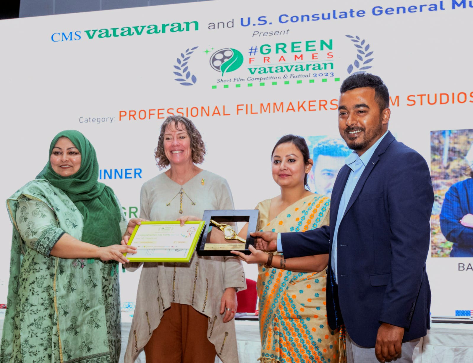 ‘গ্ৰীন ফ্ৰেমছ: বাতাৱৰণ শ্বৰ্ট ফিল্ম কম্পিটিচন এণ্ড ফেষ্টিভেল ২০২৩’ত “পৰিৱেশ সংৰক্ষণ আৰু জলবায়ুৰ সৈতে মোকাবিলা”ৰ শ্ৰেষ্ঠ কামক স্বীকৃতি প্ৰদান কৰিছে। ইয়াত পৰিৱেশ/জৈৱবৈচিত্ৰ্য সংৰক্ষণ আৰু জলবায়ুৰ সৈতে অভিযোজন/প্ৰশমনৰ গুৰুত্বক বিশেষভাৱে আলোকপাত কৰা হয় আৰু পৰিৱেশৰ ওপৰত আধুনিক জীৱনশৈলীৰ প্ৰভাৱৰ বিষয়ে নিৰ্মোহভাৱে উপস্থাপন কৰা হয়। প্ৰতিযোগিতাখনে ব্যক্তি, প্ৰতিষ্ঠান আৰু বিভিন্ন সম্প্ৰদায়ে পৰিৱেশ আৰু জলবায়ুৰ প্ৰত্যাহ্বানসমূহ কেনেকৈ মোকাবিলা কৰিছে আৰু সময়ৰ সৈতে খোজ মিলাই কাম কৰিছে সেই বিষয়ত গ্ৰহণ কৰা উত্তম পদ্ধতি আৰু ইতিবাচক কাহিনীসমূহ প্ৰচাৰ কৰিছে।