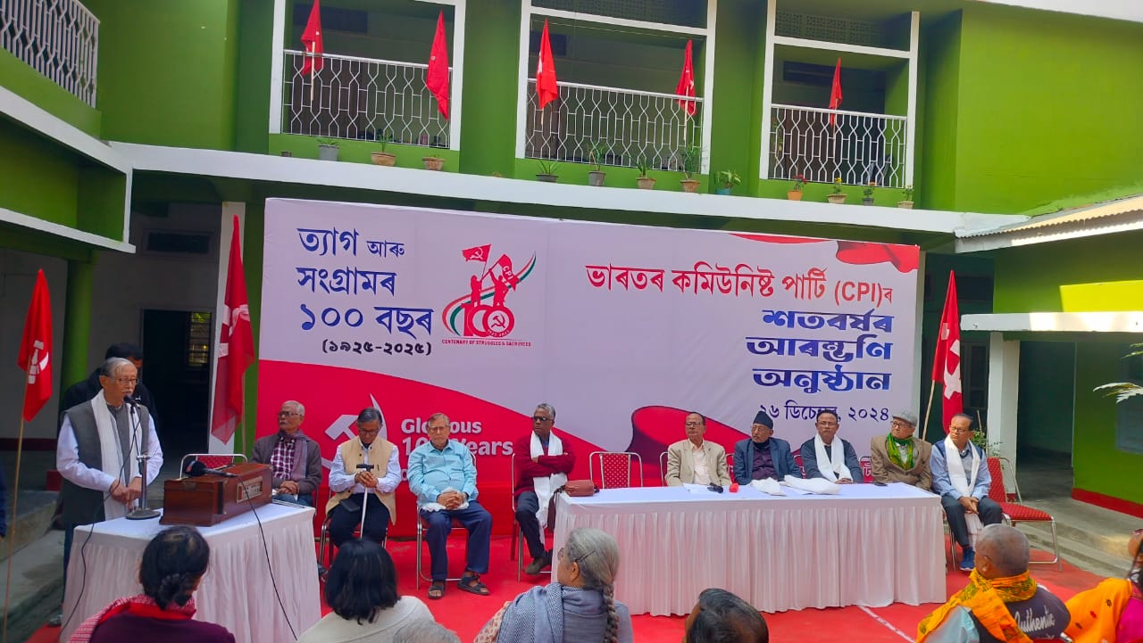 ইয়াৰ পাছতে পাৰ্টিৰ ৰাষ্ট্ৰীয় কাৰ্যনিৰ্বাহক কমৰেড মুনিন মহন্তই শতবৰ্ষ আৰম্ভণি অনুষ্ঠানৰ উদ্বোধন কৰি চি পি আইৰ জন্মৰ ইতিহাস আলোকপাত কৰে আৰু দেশৰ স্বাধীনতা আন্দোলনত অংশগ্ৰহণ নকৰা লোকসকলৰ ঐৰসত জন্ম হোৱাৰ আজি ক্ষমতাত থকাসকলে ফেচিষ্ট শাসন চলাই জনতাক চিন্তিত কৰি তুলিছে আৰু ইয়াৰ বিৰুদ্ধে সকলোকে ঐক্যবদ্ধ হৈ যুঁজিবৰ বাবে আহ্বান জনায়। সভাত মুখ্য অতিথি হিচাবে উপস্থিত থাকি বিশিষ্ট শিক্ষাবিদ-চিন্তাবিদ ডঃ হীৰেণ গোহাঁইয়ে কয় যে আজিৰ দেশখনৰ আৰ্থ-ৰাজনৈতিক পৰিস্থিতিত যিটো ফেচিষ্ট শক্তিয়ে দেশৰ শাসন ক্ষমতা দখল কৰি আছে, ইয়াৰ বিৰুদ্ধে সকলো বাওঁ-গণতান্ত্ৰিক দলসমূহক ঐক্যবদ্ধ হৈ যুজ দিবলৈ আহ্বান জনাই আৰু ইয়েই একমাত্ৰ বিকল্প বুলি কয়। লগতে তেওঁ আৰু কয় যে চিপিআই দলৰ ১০০ বছৰীয়া এটা ৰাজনৈতিক দলৰ কি কাৰণে এই সাংগঠনিক দুৰৱস্থা, এই সম্পৰ্কত দলৰ নেতা-কৰ্মীসকলে নিৰ্মোহ ভাবে পৰ্যালোচনা কৰিব লাগিব। কমিউনিষ্ট দলসমূহৰ নেতা-কৰ্মীসকলেই সমাজৰ ৰূপান্তৰ ঘটাব লাগিব। দলৰ বাহিৰৰ শুভাকাংক্ষী আৰু ৰাইজে সহযোগিতাহে আগবঢ়াব পাৰিব বুলি তেখেতে মত প্ৰকাশ কৰে৷