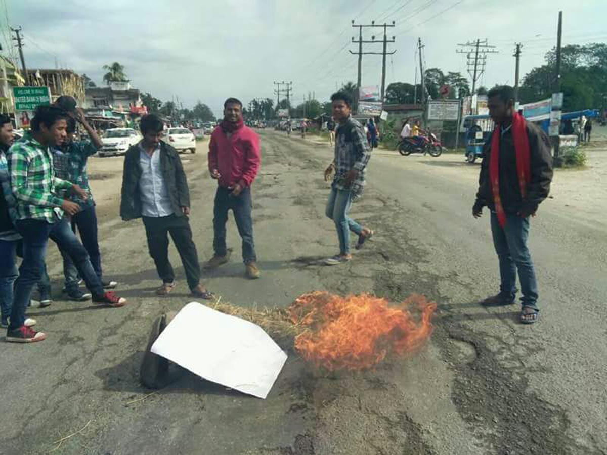 গুৱাহাটী, ২৮ নৱেম্বৰঃ আমচাং অভয়াৰণ্যত সোমবাৰৰ পৰা ৰাজ্য চৰকাৰে আৰম্ভ কৰা উচ্ছেদ অভিযান আৰু কৃষ মুক্তি সংগ্ৰাম সমিতিত নেতা ক্ৰমে বেদান্ত লস্কৰ, ধৈয্য কোঁৱৰক ষড়যন্ত্ৰৰে অসম আৰক্ষীয়ে গ্ৰেপ্তাৰ কৰাৰ বিৰুদ্ধে সমগ্ৰ ৰাজ্যজুৰি আজি কৃষক মুক্তি সংগ্ৰাম সমিতিয়ে প্ৰতিবাদী কার্যসুচি গ্ৰহণ কৰে। শিৱসাগৰ জিলাৰ উপায়ুক্ত কাৰ্যলায়ৰ সম্মুখত কৃষ মুক্তি সংগ্ৰাম সমিতিৰ কৰ্মকৰ্তাসকলে আজি আমচাংত উচ্ছেদ আৰু কৃষক মুক্তি সংগ্ৰাম সমিতিৰ নেতাৰ গ্ৰেপ্তাৰ বিৰুদ্ধে অৱস্থান ধৰ্মঘট কাৰ্যসূচী ৰূপায়ন কৰে। গোৱালপাৰা জিলাৰ যোগীঘোপাৰ চালান্তপাৰাত কৃষক ছাত্ৰ মুক্তি সংগ্ৰাম সমিতিয়ে প্ৰতিবাদী কাৰ্যসূচী গ্ৰহণ কৰি ৩১ নং ৰাষ্ট্ৰীয় ঘাইপথ অৱৰোধ কৰি মুখ্যমন্ত্ৰী সৰ্বানন্দ সোনোৱালৰ প্ৰতিকৃতি দাহ কৰে। বিশালীতো কৃষক মুক্তি সংগ্ৰাম সমিতি আৰু ছাত্ৰ মুক্তি সংগ্ৰাম সমিতিয়ে যৌথভাৱে প্ৰতিবাদ কৰি মুখ্যমন্ত্ৰীৰ প্ৰতিকৃতি দাহ কৰে।