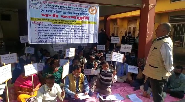 কোকৰাঝাৰ : কোকৰাঝাৰত প্ৰাথমিক শিক্ষক সন্মিলনীৰ বৃহৎ ধৰ্ণা কাৰ্যসূচী। অখিল ভাৰতীয় প্ৰাথমিক শিক্ষক সংঘৰ ঘোষণাৰে অসম ৰাজ্যিক প্ৰাথমিক শিক্ষক সন্মিলনীৰ আহ্বানত কোকৰাঝাৰ, গোসাইগাঁও আৰু পৰ্বতঝোৰা মহকুমাৰ প্ৰাথমিক শিক্ষক সন্মিলনীয়ে কোকৰাঝাৰ জিলাৰ প্রাথমিক শিক্ষা বিষয়াৰ কার্যালয়ৰ সমুখত এক বৃহৎ ধৰ্ণা কাৰ্যসূচী ৰূপায়ণ কৰে।