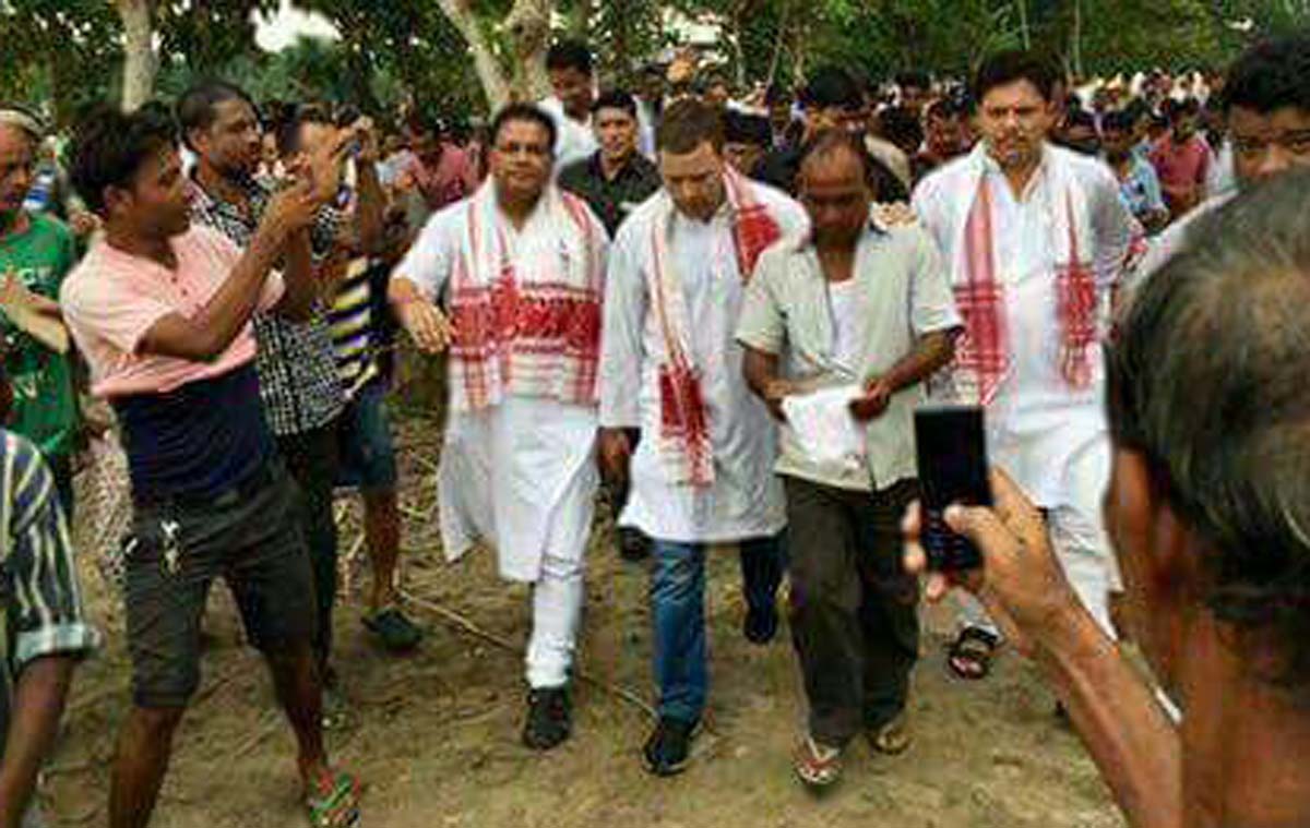 লখিমপুৰ, ৩ আগষ্টঃ ভাৰতীয় জাতীয় কংগ্ৰেছৰ উপ সভাপতি ৰাহুল গান্ধীয়ে দুপৰীয়া লখিমপুৰ জিলাৰ বানাক্ৰান্ত অঞ্চল পৰিভ্ৰমণ কৰে৷ ৰাহুল গান্ধীয়ে আমতলাৰ জৈনপুৰ আৰু বগলীজানত উপস্থিত হৈ নাৱেৰে ৰঙানদীৰ বানত হোৱা ক্ষয় ক্ষতিৰ বুজ লয়। তেওঁ বানত ক্ষতিগ্ৰস্ত হোৱা পৰিয়ালসমূহৰ সৈতে মত বিনিময় কৰি ক্ষতিগ্ৰস্ত লোকসকলৰ প্ৰাপ্যৰ বাবে যুঁজ দি যাব বুলি মন্তব্য কৰে। উল্লেখ্য যে, কংগ্ৰেছৰ উপ সভাপতি ৰাহুল গান্ধীয়ে কেৱল মাত্ৰ বানাক্ৰান্ত অঞ্চল পৰিদৰ্শন কৰিয়েই আঁতৰি যোৱাত বানাক্ৰান্ত ৰাইজে তীব্ৰ ক্ষোভ ব্যক্ত কৰে৷ ৰাহুল গান্ধীৰ লগত অসম প্ৰদেশ কংগ্ৰেছৰ সভাপতি ৰিপুন বৰা, অসম বিধান সভাৰ বিৰোধী দলপতি দেৱব্ৰত শইকীয়া, প্ৰাক্তন বিধায়িকা বিস্মিতা গগৈ, ভূপেন বৰা, লখিমপুৰ জিলা কংগ্ৰেছৰ সভাপতি ডঃ জয়প্ৰকাশ দাসে বানাক্ৰান্ত অঞ্চলসমূহ পৰিভ্ৰমণ কৰে৷