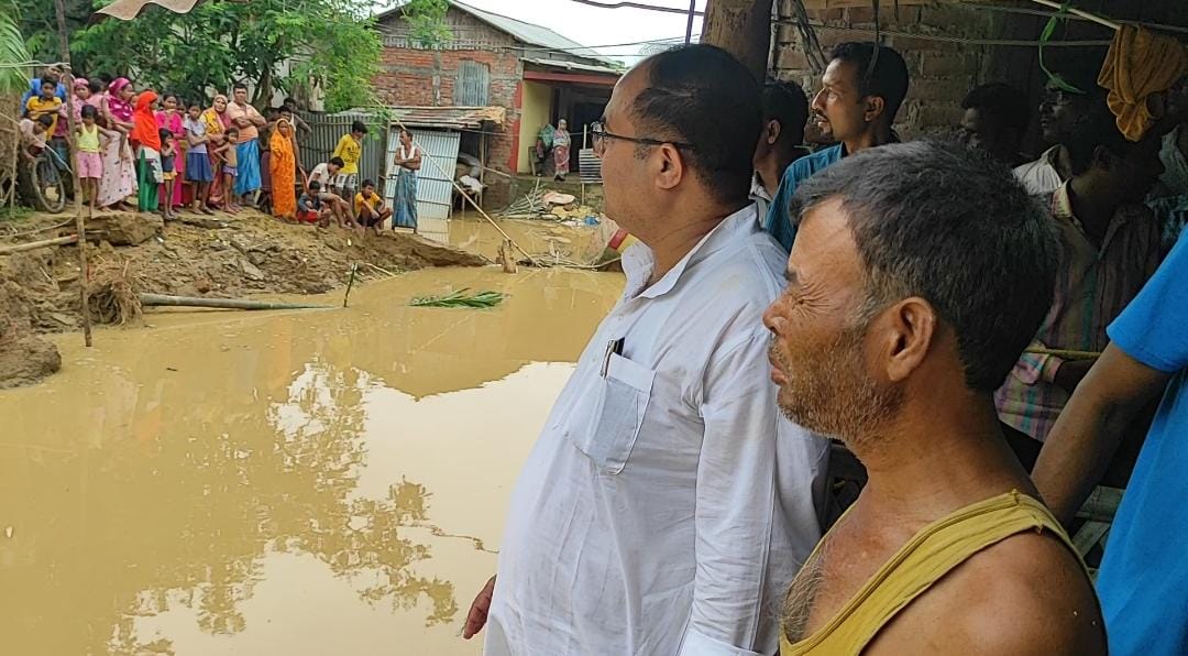 মানকাচৰ : মানকাচৰত অপৰিবৰ্তিত বান পৰিস্থিতি। ন ন অঞ্চল প্লাৱিত হৈছে। এসপ্তাহে জলমগ্ন ডেৰ শতাধিক গাঁও। উপায়ুক্তৰ কাৰ্যালয়কে ধৰি কেবাটাও চৰকাৰী কাৰ্যালয় পানীৰ তলত। পানীৰ ঢলে উটুৱাই নিলে কালাপানী-টেপৰপাৰা সংযোগী পথৰ কাঠৰ দলং। ঠাকুৰাণবাৰীত পানীৰ ঢলে উটুৱাই নিয়া ১৬ টা পৰিয়ালৰ ঘৰ। বান পৰিস্থিতিৰ বুজ ল’লে বিধায়ক আৰু জিলা পৰিষদৰ মুখ্য কাৰ্যবাহী বিষয়াই।