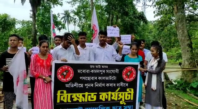 নলবাৰী : সাংসদ দিলীপ শইকীয়াৰ জন্ম গাঁৱত ছাত্ৰ সন্থাৰ বিক্ষোভ কাৰ্যসূচী। নলবাৰী জিলাৰ বৰভাগ ৰাজহ চক্ৰৰ অন্তৰ্গত পূৰ্ণদৈচপৰা গাঁৱৰ মৰোৱা-কমলপুৰ সংযোগী পথছোৱাৰ কালভাৰ্ট বৰলীয়া নদীয়ে উটুৱাই নিয়াৰ ফলত নলবাৰী-কামৰূপ জিলাৰ যোগাযোগ ব্যাহত হৈ পৰিছে। বৰ্তমান এখন বাঁহৰ সাকোঁ নিৰ্মাণ কৰি স্থানীয় ৰাইজে অতি বিপদসংকুলভাৱে যাতায়ত কৰিব লগীয়া হৈছে।