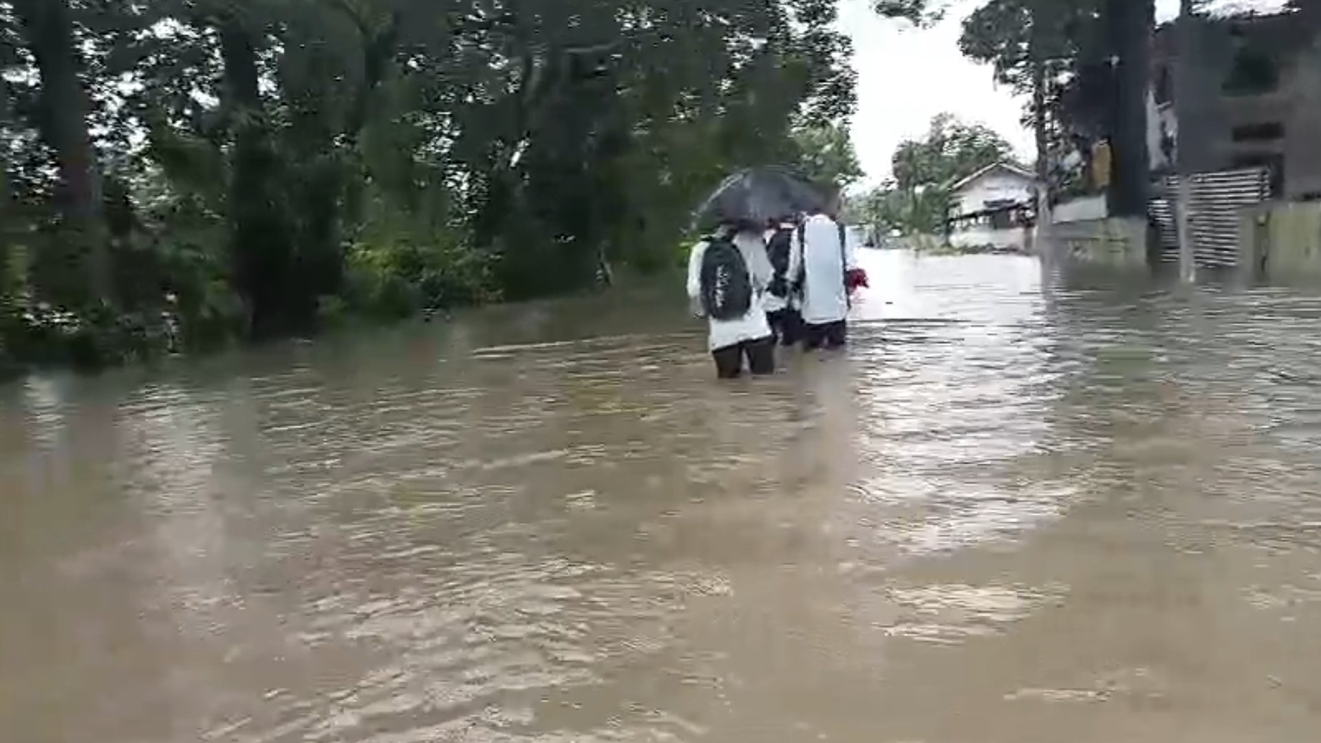 গুৱাহাটী, ২৫ জুন, ২০২৪ : নেৰানেপেৰা বৰষুণৰ ফলত ভয়াবহ বানৰ কবলত ৰাজ্যৰ বিস্তীৰ্ণ অঞ্চল। ৰাজ্যৰ ৯ খনকৈ জিলাৰ বিস্তীৰ্ণ অঞ্চল বাঢ়নী পানীৰ তলত (Nine District Under Flood Water)। কামৰূপ, গোৱালপাৰা, বজালী, হোজাই, বৰপেটা, কৰিমগঞ্জ, কাছাৰ, নগাঁও, আৰু দৰংত এতিয়াও বানৰ তাণ্ডৱলীলা অব্যাহত আছে। নেৰানেপেৰা বৰষুণৰ ফলত কামৰূপ মহানগৰ জিলাৰ বিস্তীৰ্ণ অঞ্চল কৃত্ৰিম বানৰ কবলত পৰিছিল। বিশেষকৈ মহানগৰী গুৱাহাটীৰ বহু অঞ্চল কৃত্ৰিম বানত ডুব গৈছিল যদিও বৰ্তমান পৰিস্থিতি উন্নত হৈছে।