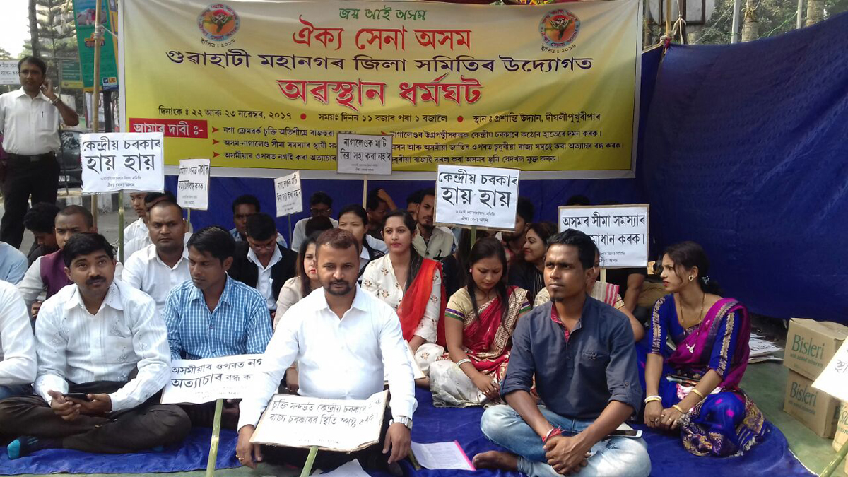 গুৱাহাটী, ২২ নৱেম্বৰ: কেন্দ্রীয় চৰকাৰৰ আৰু এন এছ চি এম (আই এম)ৰ মাজত নাগালিম সম্পর্কত হােৱা নগা ফ্ৰেমৱৰ্ক চুক্তি ৰাজহুৱা কৰাৰ লগতে সাম্প্রতিক সময়ত ৰাজ্যখনত চলি থকা সীমা সমস্যা সমাধান কৰি ৰাজ্যখনত শান্তি আৰু সুস্থিৰতা অক্ষত ৰাখিবলৈ ঐক্য সেনা অসমে গুৱাহাটী মহানগৰ সমিতিৰ উদ্যোগত ২২ আৰু ২৩ নৱেম্বৰ তাৰিখে দুদিনীয়া কাৰ্যসূচীৰে দীঘলীপুখুৰী পাৰত অৱস্থান ধর্মঘট কাৰ্যসূচী ৰূপায়ন কৰে। ভৱিষ্যতে অসমৰ ভৌগলিক সুস্থিৰতাৰক্ষাৰ লক্ষ্যৰে ঐক্য সেনা অসমে কেন্দ্রীয় চৰকাৰৰ প্ৰস্তাৱিত নগাচুক্তিৰ প্ৰাৰম্ভিক কাম-কাজৰ সবিশেষ তথ্য ৰাজহুৱা কৰক’, ‘গোলাঘাটকে ধৰি উজনি অসমৰ বিভিন্ন জিলাত নগাৰ দ্বাৰা দখল হােৱা অসমৰ ভূমি উদ্ধাৰৰ তাৎক্ষনিক ব্যৱস্থা কৰক’। ‘অৰুনাচল আৰু মেঘালয়ৰ দ্বাৰা দখলকৃত ভূমি উদ্ধাৰ কৰি দীর্ঘদিন ধৰি পাশৱিক নির্যাতনৰ সন্মুখীন হৈ অহা সীমান্তবাসী অসমীয়া গঞাক স্বাভাৱিক জীৱন – যাপনৰ সুযোগ দিয়ক’। ‘অসমক অন্ধকাৰত ৰাখি কেন্দ্ৰই নগাৰ সৈতে কৰাৰ চুক্তিৰ বিৰুদ্ধে ৰাজ্য চৰকাৰে শক্তিশালী অৱস্থান গ্রহণ কৰক’ আদি দাবী সম্বলিত এখন স্মাৰক পত্র মুখ্যমন্ত্ৰী আৰু কেন্দ্রীয় গৃহমন্ত্রীলৈ প্ৰেৰণ কৰে। দিনৰ ১১ বজাত দীঘলীপুখুৰী পাৰত অসমৰ ভিন্ন প্রান্তৰ পৰা অহা সংগঠনটােৰ কৰ্মী সকলে হাতে হাতে প্লেকার্ড, ফেন্টুন আদি লৈ ‘তেজ দিম মাটি নিদিও” ‘অসমৰ ভূমিৰ পৰা নগাৰ বেদখল মুক্ত কৰক’, চুঙাজান এম ভি পঞ্চায়তৰ বৃহৎ এলেকা সামৰি নগালেণ্ড প্রশাসনে স্থাপন কৰা মহকুমা কাৰ্যালয় গৃহ শীঘ্ৰেই উচ্ছেদ কৰক আদি শ্লোগান দি উত্তাল কৰে। উক্ত প্রতিবাদী কাৰ্যসূচীত নেতৃত্ব বহন কৰা ঐক্য সেনা অসমৰ কেন্দ্রীয় সভাপতি সঞ্জীৱ মহন্ত, কাৰ্যকৰী সভাপতি দেৱজ্যোতি শৰ্মা, সাধাৰণ সম্পাদক শ্বহিদুল ইছলাম, মুখ্য মুখপাত্ৰ কমল কুমাৰ, ৰাজ্যিক মহিলা সভানেত্রী ভূশিত কাশ্যপ, সম্পাদিকা উর্মিমালা দেৱী আদিয়ে অংশ গ্রহণ কৰি অসমৰ ভূখণ্ড সুৰক্ষিত কৰিব নোৱাৰা বিজেপি চৰকাৰক তীব্র ককর্থনা কৰি কেন্দ্রীয় আৰু অসম চৰকাৰক উপৰােক্ত দাবী সমূহৰ প্রতি শীঘ্ৰেই গুৰুত্ব দি সীমা সমস্যাক লৈ ৰাজ্যখনত ৰক্তক্ষয়ী পৰিস্থিতি উদ্ভৱ হােৱাৰ আগেয়ে বিহীত ব্যৱস্থা গ্ৰহণৰ দাবী জনাইছে ।