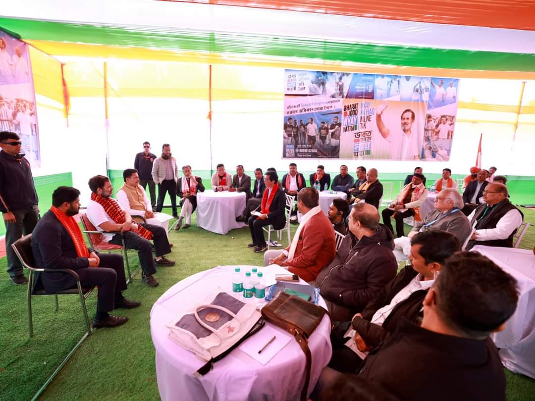গুৱাহাটী, ২১ জানুৱাৰী, ২০২৪ : ৰাহুল গান্ধীৰ সৈতে বিৰোধী ঐক্য মঞ্চৰ (Opposition) দেওবাৰে এখন গুৰুত্বপূৰ্ণ বৈঠক অনুষ্ঠিত হয়৷ অসম-অৰুণাচল সীমান্তৰ সোলেঙি এলেকাৰ ৰাজগড়ত ডেৰ ঘণ্টা ধৰি এই বৈঠক অনুষ্ঠিত হয়৷ বৈঠকত ৰাহুল গান্ধীয়ে ১৫ টা বিৰোধী দলৰ প্ৰতিগৰাকী মুৰব্বী নেতাৰ মন্তব্য গুৰুত্বসহকাৰে শুনে৷