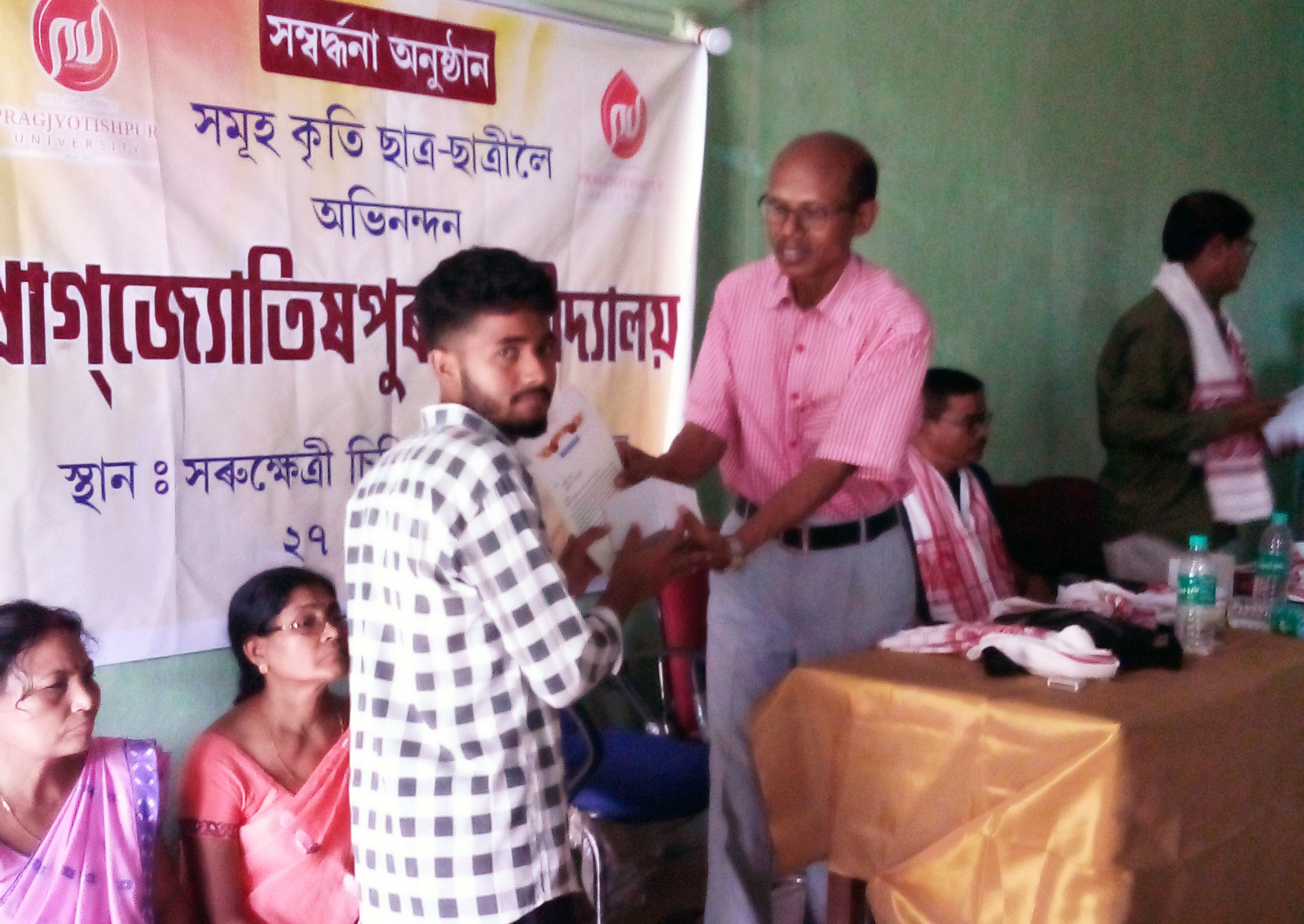 সৰ্থেবাৰী, ২৮ মে’, ২০২৪ : প্ৰাগজ্যোতিষপুৰ বিশ্ববিদ্যালয়ে এই বৰ্ষৰ উচ্চতৰ মাধ্যমিক শিক্ষান্ত পৰীক্ষাত প্ৰথম বিভাগত উত্তীৰ্ণ সমূহ শিক্ষাৰ্থীক (Students) অনুপ্ৰেৰণামূলক সম্বৰ্ধনা জনাবলৈ ২৭ মে’ত সৰ্থেবাৰীত এক অনুষ্ঠানৰ আয়োজন কৰে৷ সৰ্থেবাৰীস্থিত সৰুক্ষেত্ৰী চিনিয়ৰ চেকেণ্ডাৰী স্কুলত আয়োজিত এই অনুষ্ঠানত সৰ্থেবাৰীৰ অন্তৰ্গত কেইবাখনো বিদ্যালয় তথা মহাবিদ্যালয়ৰ প্ৰায় ৯০ গৰাকী শিক্ষাৰ্থীক সম্বৰ্ধনা জনোৱা হয়৷