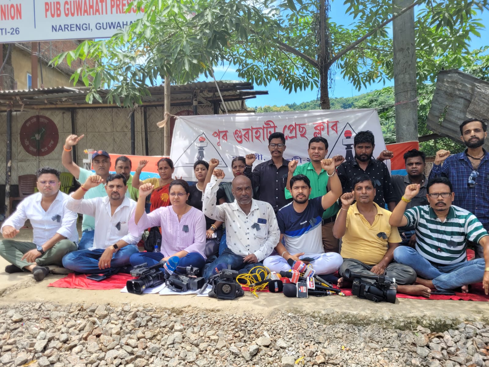 গুৱাহাটী, ৮ জুলাই, ২০২৩ : বাতৰি সংগ্ৰহ কৰিবলৈ যাওঁতে সাংবাদিকক দুৰ্বব্যবহাৰ কৰা সাতগাঁও থানাৰ ভাৰপ্ৰাপ্ত আৰক্ষী বিষয়া সন্দীপ কুমাৰ কানুক অচিৰেই নিলম্বনৰ দাবী তুলি পূব গুৱাহাটী প্ৰেছ ক্লাবৰ সদস্যসকলে এক প্ৰতিবাদী কাৰ্যসূচী ৰূপায়ন কৰে (Journalist Protest in Narengi)। গুৱাহাটীৰ নাৰেঙ্গীস্থিত পূব গুৱাহাটী প্ৰেছ ক্লাবৰ সন্মুখত ক’লা বেজ পৰিধান কৰি প্ৰতিবাদী সাংবাদিক সকলে আৰক্ষীৰ মইমতালী নচলিব, সাংবাদিক নিৰাপত্তা সু-নিশ্চিত কৰক, জনসাধাৰণৰ সৈতে আৰক্ষীৰ সম্পৰ্ক মধুৰ কৰক, সাংবাদিকৰ অধিকাৰ খৰ্ব কৰিবলৈ দিয়া নহ’ব আদি শ্ল’গানৰে পৰিৱেশ উত্তাল কৰি তোলে।