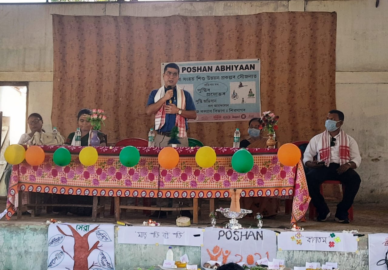 পোষণ অভিযানৰ সজাগতা সভাৰ আৰম্ভণিতে নাজিৰা মহকুমাৰ মহকুমাধিপতি সব্যসাচী কাশ্যপে বন্তি প্ৰজ্বলন কৰে আৰু তাৰ পিছতে গৰ্ভৱতী মহিলা আৰু প্ৰসূতি মাতৃ সকলক উদ্দেশ্যি অঙ্গনবাদী কৰ্মী সকলে বিয়ানাম পৰিবেশন কৰে। শিশু উন্নয়ন প্ৰকল্প বিষয়া ৰিনু বড়াই সভাৰ উদ্দেশ্য ব্যাখ্যা কৰি শিশুৰ লগতে মাতৃ সকলে কেনে ধৰণৰ পুষ্টিকৰ আহাৰ গ্ৰহণ কৰা উচিত সেই বিষয়ে সকলোকে অৱগত কৰায়।