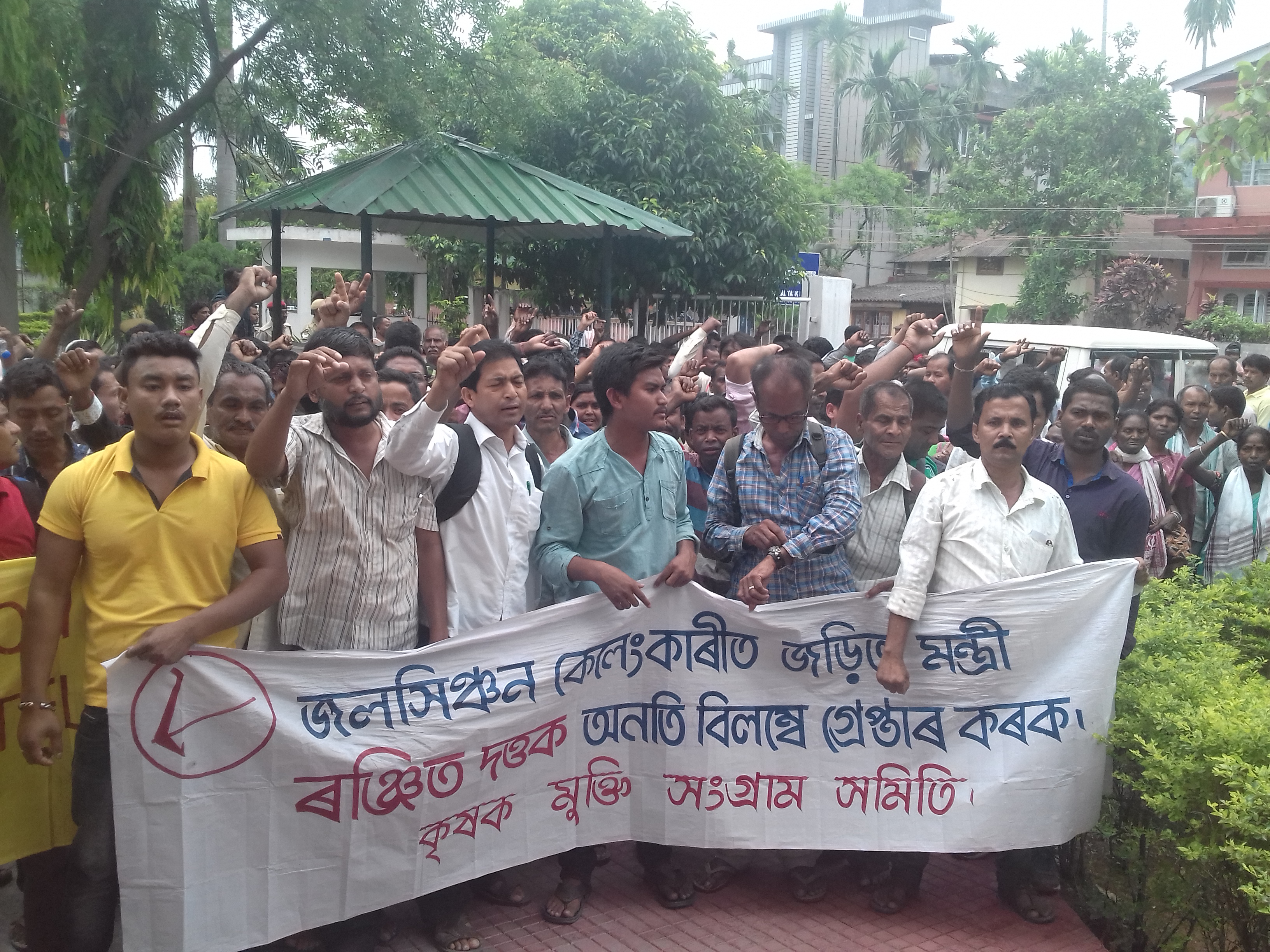 গুৱাহাটী, ৮ মেঃ জলসিঞ্চন বিভাগৰ সচিব কুজেন্দু দলেয়ে বিভাগৰ মন্ত্ৰী ৰঞ্জিত দত্তৰ নিৰ্দেশত উৎকোচ লৈ দুৰ্নীতি নিৰ্বাৰক শাখাৰ হাতত ধৰা পৰিছিল৷ এই অভিযোগ গণমুক্তি সংগ্ৰাম অসমৰ আহ্বায়ক অখিল গগৈ, কৃষক মুক্তি সংগ্ৰাম সমিতিৰ সভাপতি ৰাজু বৰা আৰু ভাস্কো ডি শইকীয়াৰ। গুৱাহাটীৰ দুৰ্নীতি নিৰ্বাৰক শাখাৰ কাৰ্য্যালয়ত পাঁচশৰো অধিক কৃষক মুক্তি সংগ্ৰাম সমিতিৰ কৰ্মী উপস্থিত হৈ জলসিঞ্চন বিভাগত হোৱা দুৰ্নীতিৰ উচিত তদন্তৰ দাবী ব্যাপক প্ৰতিবাদ সাব্যস্ত কৰে৷ সমিতিয়ে ৰঞ্জিত দত্ত মূর্দাবাদ, বিজেপি চৰকাৰ হায় হায়, সৰ্বানন্দ সোনোৱাল দুৰ্নীতিৰ নায়ক শ্লোগানৰে দুৰ্নীতি নিবাৰক শাখাৰ চৌহদ উত্তাল কৰি মুখ্যমন্ত্ৰীলৈ এক দাবী সম্বলিত স্মাৰক পত্ৰ প্ৰেৰণ কৰে৷ কৃষক নেতা অখিল গগৈয়ে অভিযোগ কৰে যে কুজেন্দু দলেয়ে মন্ত্ৰী ৰঞ্জিত দত্তৰ কাৰণে ঠিকাদাৰৰ পৰা টকা লৈছিল আৰু এই কথা কুজেন্দু দলে জেৰাত দুৰ্নীতি নিৰ্বাৰক শাখাত স্বীকাৰ কৰিছে। কুজেন্দু দলে মন্ত্ৰী ৰঞ্জিত দত্তৰ নাম উল্লেখ কৰাৰ পিছতো আজিলৈ মন্ত্ৰী গৰাকীৰ বিৰুদ্ধে দুৰ্নীতি নিৰ্বাৰক শাখাই বিহিত ব্যৱস্থা নোলোৱাত সমিতিয়ে আশ্চৰ্য প্ৰকাশ কৰিছে৷ অখিল গগৈয়ে অভিযোগ কৰে যে কুজেন্দু দলেয়ে মন্ত্ৰী ৰঞ্জিত দত্তৰ নামত টকা লোৱাৰ কথা স্বীকাৰ কৰাৰ পিছত মুখ্যমন্ত্ৰী সৰ্বানন্দ সোনোৱালে দুৰ্নীতি নিৰ্বাৰক শাখাৰ উচ্চ পদস্থ বিষয়াক ৰঞ্জিত দত্তৰ বিৰুদ্ধে তদন্ত নকৰিবলৈ নিদেৰ্শ দিয়ে। অখিলৰ অভিযোগ মুখ্যমন্ত্ৰী সোনোৱাল আৰু বিজেপি চৰকাৰখনে দুৰ্নীতি মুক্ত অসমৰ কথা কৈ চৰকাৰ গঠন কৰিয়ে দুৰ্নীতিত লিপ্ত হৈছে। গাদী দখলৰ এবছৰৰ পিছতো কোনো উন্নয়নৰ কাম কৰিব নোৱাৰা চৰকাৰখন আগৰ কংগ্ৰেছ চৰকাৰখনতকৈ বেছি দুৰ্নীতিত লিপ্ত হোৱাহে দেখা গৈছে। অখিলে শাসকীয় দলৰ দুৰ্নীতিৰ বিৰুদ্ধে নিৰৱ ভূমিকা গ্ৰহণ কৰা দুই বিৰোধী দল কংগ্ৰেছ আৰু এআইইউডিএফকো কঠোৰ ভাষাৰে সমালোচনা কৰে। তেওঁ মন্তব্য কৰে যে দুৰ্নীতিত পোত গৈ থকা আগৰ কংগ্রেছ চৰকাৰখনক বৰ্তমানৰ বিজেপি চৰকাৰখনে ব্লেকমেইল কৰি আছে। যদি কংগ্ৰেছ চৰকাৰখনে বিজেপিৰ বিৰুদ্ধে মাত মতে তেন্তে কংগ্ৰেছৰ দিনত হোৱা দুৰ্নীতিৰ তদন্ত কৰা হ’ব বুলি ভয়তে কংগ্ৰেছীয়ে মুখবন্ধ কৰি থৈছে। ইমান বছৰে কংগ্ৰেছে কৃষক তথা অসমৰ দুখীয়া মানুহৰ টকা মাৰি খাইছিল আৰু এতিয়া বিজেপিয়ে সেই একে নীতিকে আৰম্ভ কৰিছে৷ অখিলে বিধান সভাত ৰঞ্জিত দত্তক জলসিঞ্চন বিভাগৰ দুৰ্নীতিৰ তদন্তৰ মাজলৈ আনিব লাগে বুলি বিৰোধী দলসমূহক আহ্বান জনায়। কৃষক নেতাগৰাকীয়ে উৎকোচ লৈ ঠিকাদাৰৰ বিল পাছ কৰাৰ লগত জড়িত সকলৰ বিৰুদ্ধেও তদন্ত প্ৰক্ৰিয়া ক্ষিপ্ৰ কৰা, জলসিঞ্চন বিভাগৰ অবৈধ কমিচন কেলেংকাৰীৰ তদন্ত চিবিআইক দিয়া আৰু অসমত সকলো অবৈধ চিণ্ডিকেট সম্পূৰ্