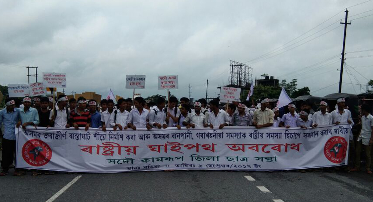 ৰঙিয়া, ৯ ছেপ্টেম্বৰঃ কেন্দ্ৰীয় আৰু ৰাজ্য চৰকাৰে অসমক কৰা বঞ্চনাৰ প্ৰতিবাদত সদৌ অসম ছাত্ৰ সন্থা চমুকৈ আছুৱে সমগ্ৰ ৰাজ্যৰ লগতে ৰঙিয়াত উত্তাল প্ৰতিবাদ সাব্যস্ত কৰে৷ অসমৰ জৰাজীৰ্ণ ৰাস্তা-ঘাট নিৰ্মাণ, বানপানী-গৰাখহনীয়া সমস্যাক ৰাষ্ট্ৰীয় সমস্যা হিচাপে ঘোষণা কৰাৰ দাবীত আছুৰ শতাধিক কৰ্মীয়ে ৩১ নং ৰাষ্ট্ৰীয় ঘাইপথ অৱৰোধ কৰে৷ প্ৰতিবাদকাৰীসকলে বিজেপি চৰকাৰ হায় হায়, অসম চৰকাৰ মুৰ্দাবাদ, বান সমস্যা সমাধান কৰক, গৰাখহনীয়া ৰোধ কৰক, বান সমস্যাক ৰাষ্ট্ৰীয় সমস্যা ৰূপে ঘোষণা কৰক আদি শ্ল’গানেৰে চৌদিশ উত্তাল কৰি তোলে। আছুৰ অৱৰোধৰ ফলত ৰঙিয়াৰ ৩১নং ৰাষ্ট্ৰীয় ঘাইপথ শতাধিক যান-বাহন আৱদ্ধ হৈ পৰে। অৱৰোধস্থলীত সতৰ্কতা মূলক ব্যৱস্থা ৰূপে প্ৰশাসনে আৰক্ষী-অৰ্ধ সামৰিক বাহিনী মোতায়েন কৰে।