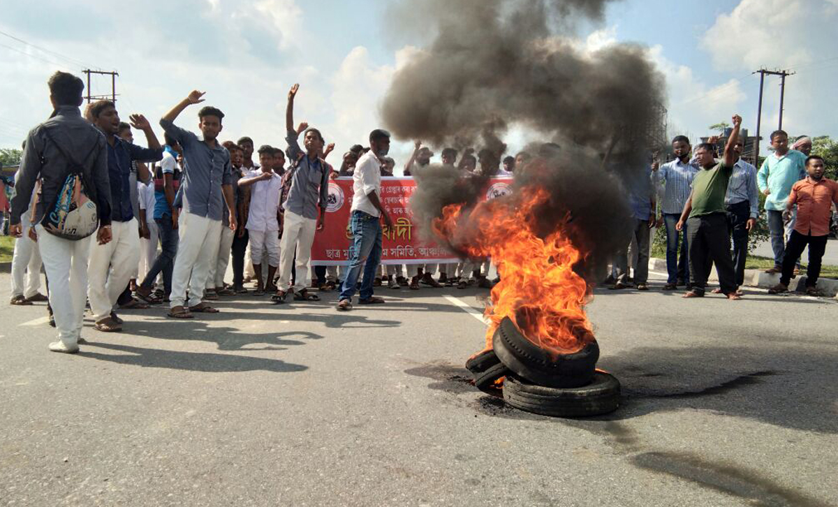 ৰঙিয়া, ১৫ ছেপ্টেম্বৰঃ অখিল গগৈক গ্ৰেপ্তাৰৰ প্ৰতিবাদত আৰু বিনাচৰ্তে মুক্তিৰ দাবীত কৃষক মুক্তি সংগ্ৰাম সমিতিয়ে সমগ্ৰ অসমৰ প্ৰতিবাদ অব্যাহত ৰাখিছে৷ ৰঙিয়াত ছাত্ৰ মুক্তি সংগ্ৰাম সমিতিয়ে অখিল গগৈক বিনাচৰ্তে মুক্তিৰ দাবীত ৩১নং ৰাষ্ট্ৰীয় ঘাইপথ অৱৰোধ কৰি তীব্ৰ প্ৰতিবাদ সাব্যস্ত কৰে। প্ৰতিবাদকাৰীসকলে বিজেপি চৰকাৰ হায় হায়, হিমন্ত বিশ্ব শৰ্মা মুৰ্দাবাদ, আৰএছএছ মুৰ্দাবাদ, বিজেপি চৰকাৰৰ হিটলাৰী শাসন বন্ধ কৰক, অখিল গগৈক বিনাচৰ্তে মুক্তি দিয়ক আদি শ্ল’গানেৰে চৌদিশ উত্তাল কৰি তোলে। ছাত্ৰ মুক্তিৰ প্ৰতিবাদৰ সময়ত ৰঙিয়াৰ ৩১ নং ৰাষ্ট্ৰীয় ঘাইপথত শতাধিক যান বাহন আৱদ্ধ হৈ পৰে। প্ৰতিবাদকাৰীসকলে আজিৰ ভিতৰত অখিল গগৈক মুক্তি নিদিলে সমগ্ৰ ৰাজ্যতে ব্যাপক গণতান্ত্ৰিক আন্দোলন গঢ়ি তোলাৰ হুংকাৰ দিয়ে।