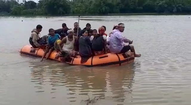 বাক্সা: ধমধমাত তীব্ৰ গতিত চলিছে এছ ডি আৰ এফ বাহিনীৰ উদ্ধাৰ অভিযান। ধমধমাত বানৰ মাজত আৱদ্ধ লোক সকলৰ উদ্ধাৰ অভিযান দ্ৰুত গতিত চলাই আছে এছ ডি আৰ এফ বাহিনীৰ জোৱান সকল। পাগলাদিয়া নদীৰ বিধ্বংসী বানে ভয়ংকৰ ৰূপ ধাৰণ কৰা ধমধমা অঞ্চলত বানপানীত আৱদ্ধ লোক সকলৰ উদ্ধাৰ অভিযানত নামিছে এছ ডি আৰ এফ বাহিনী। বানাক্ৰান্ত লোক সকলৰ সুৰক্ষিতভাৱে উদ্ধাৰ কৰি আশ্ৰয় শিবিৰলৈ লৈ অনাৰ দায়িত্বত নোযোজিত এছ ডি আৰ এফৰ জোৱান সকল।