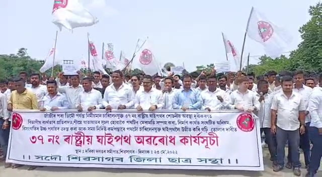 জাঁজীৰ পৰা ডিমৌলৈ আৰু ডিমৌৰ পৰা মৰাণলৈ বিগত চাৰি বছৰ ধৰি নিৰ্মাণ হৈ থকা চাৰিলেনযুক্ত ঘাইপথৰ নিৰ্মাণত অনিয়ম আৰু পুঁজিৰ অপব্যৱহাৰ হোৱাৰ অভিযোগত সদৌ শিৱসাগৰ জিলা ছাত্র সন্থাই সোমবাৰে এক উত্তাল প্ৰতিবাদ সাব্যস্ত কৰে। চাৰি বছৰে ৰাষ্ট্ৰীয় ঘাইপথটোৰ মাত্ৰ ১০ শতাংশ নিৰ্মাণ কামহে সম্পূৰ্ণ হৈছে।