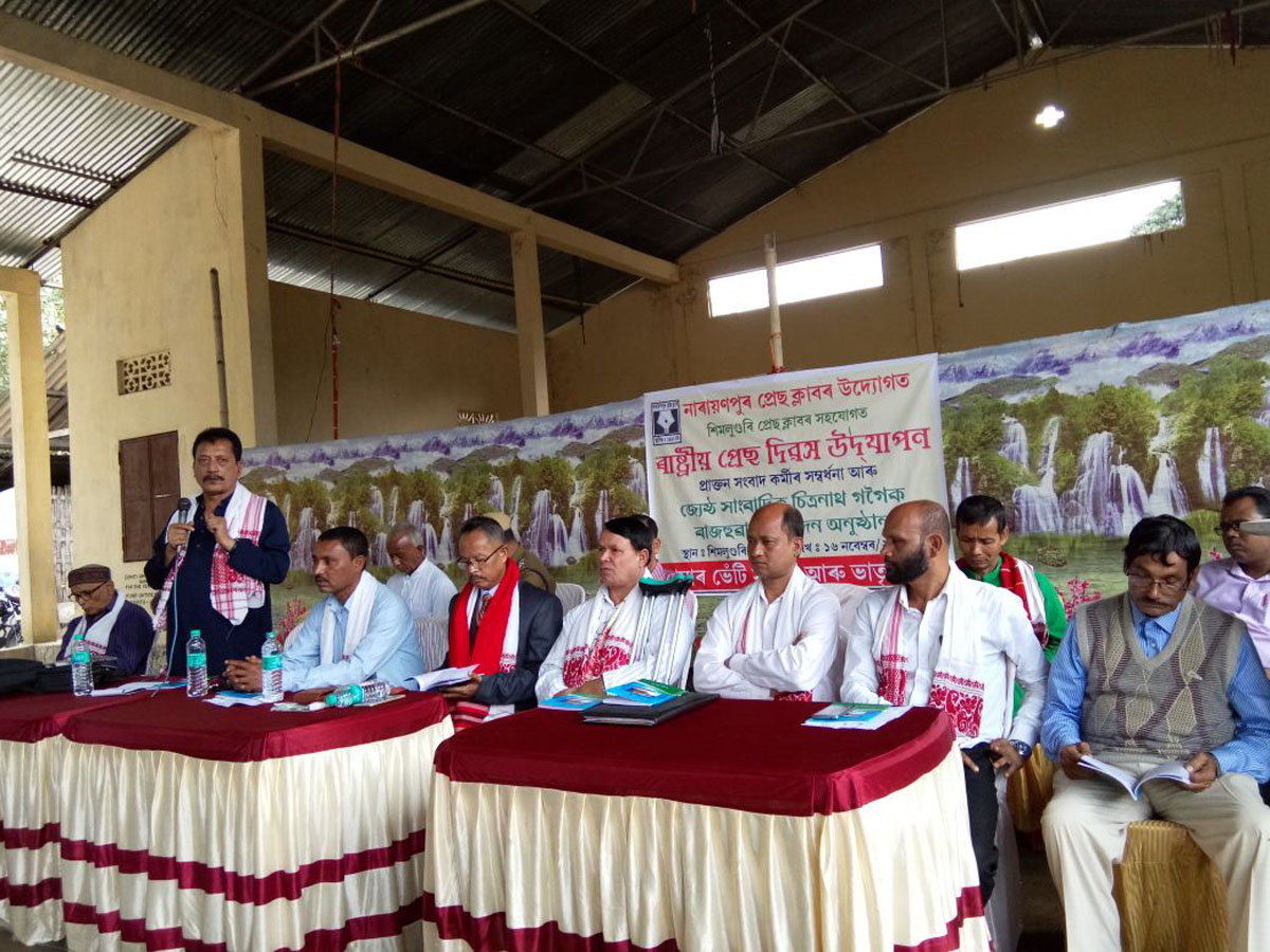শিমলুগুৰি, ১৬ নৱেম্বৰ: ৰাজ্যৰ বিভিন্ন প্ৰান্তৰ লগতে লখিমপুৰ জিলাৰ নাৰায়ণপুৰ প্ৰেছ ক্লাবৰ উদ্যোগত শিমলুগুৰি প্ৰেছ ক্লাবৰ সহযোগত আজি ৰাষ্ট্ৰীয় প্ৰেছ দিৱস উদযাপন কৰে৷ অসম-অৰুণাচলৰ সীমান্তৱৰ্তী শিমলুগুৰি ৰংগমঞ্চত অনুষ্ঠিত কৰা দিৱস উদযাপন সভাখনত সভাপতিত্ব কৰে জ্যেষ্ঠ সাংবাদিক কুমুদ শইকীয়াই৷ ৰাষ্ট্ৰীয় প্ৰেছ দিৱসৰ সভাখনি উদ্বোধন কৰে মিচিং সাহিত্য সভাৰ প্ৰাক্তন উপ সভাপতি তুলেশ্বৰ পেগুৱে৷ সভাৰ আৰম্ভনিৰ পূৰ্বে বন্তি প্ৰজ্বলন কৰে সমাজ কৰ্মী বিপুল ভূঞাই৷ জ্যেষ্ঠ সাংবাদিক জগত গগৈৰ সম্পাদনাত প্ৰকাশিত স্মৃতি গ্ৰন্থ “গণ সংযোগ” উন্মোচন কৰে স্থানীয় বিধায়ক দেবানন্দ হাজৰিকাই৷ অসম জাতীয়তাবাদী যুৱ ছাত্ৰ পৰিষদৰ উপ সভাপতি হেমচন্দ্ৰ গোস্বামী, বাৰ্তাজীৱি সংঘৰ সাধাৰণ সম্পাদক টুটুমণি ফুকন, অৱসৰ প্ৰাপ্ত অধ্যাপক ডঃ কিৰণ চন্দ্ৰ শৰ্মাকে আদি কৰি বহুকেইজন বিশিষ্ট ব্যক্তি উপস্থিত থাকে এই ৰাষ্ট্ৰীয় প্ৰেছ দিৱসত৷