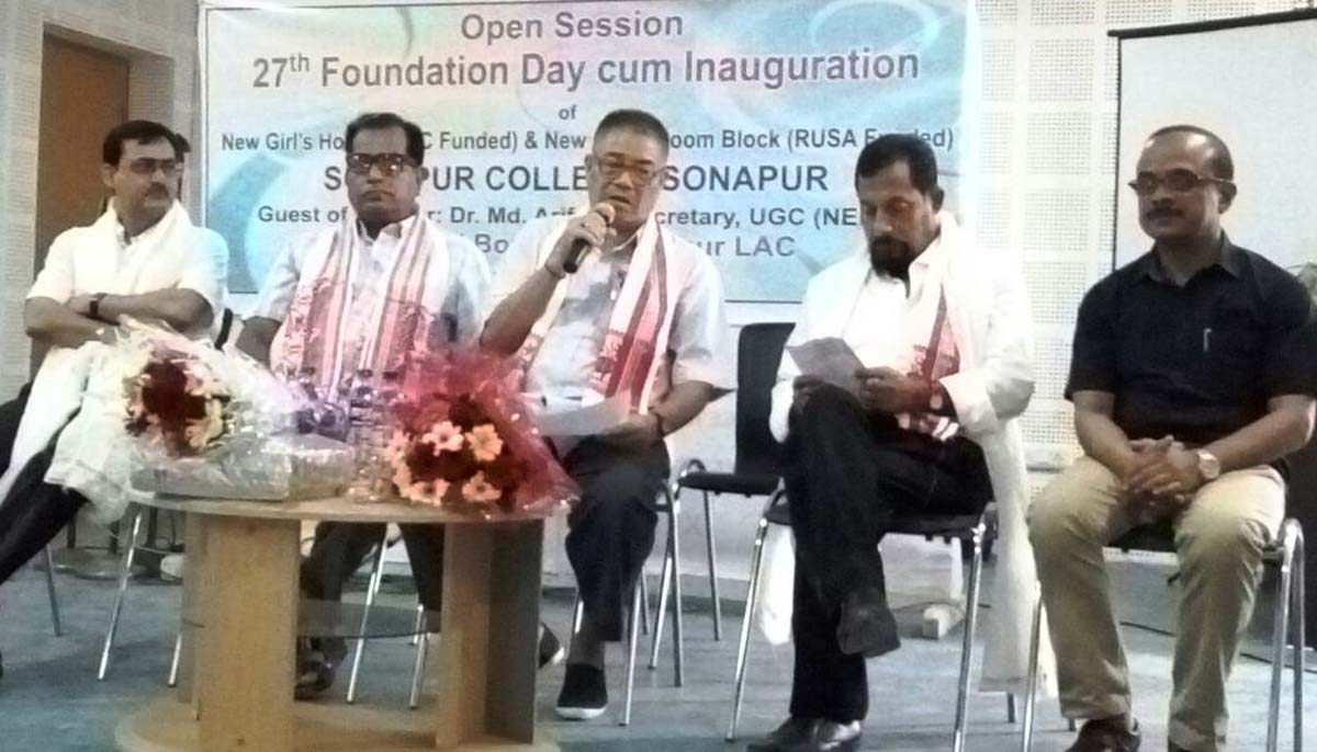 সোণাপুৰ, ৩ আগষ্টঃ সোণাপুৰ মহাবিদ্যালয়ৰ সপ্তবিংশতিতম প্ৰতিষ্ঠা দিৱস দিনজোৰা কাৰ্যসূচীৰে মহাবিদ্যালয়ৰ প্ৰাঙ্গনত অনুষ্ঠিত হয়৷ কাৰ্যসূচী অনুসৰি পুৱা ৯ বজাত মহাবিদ্যালয়ৰ অধ্যক্ষ ড০ দেৱব্ৰত খনিকৰে পতাকা উত্তোলন কৰাৰ পিছতে মহাবিদ্যালয়ৰ পৰিচালনা সমিতিৰ প্ৰাক্তন সভাপতি ভূপেন গোস্বামীয়ে স্মৃতি তৰ্পন কৰে৷ ইয়াৰ পিছতেই বিশ্ববিদ্যালয়ৰ অনুদান আয়োগৰ আৰ্থিক সাহাৰ্য্যৰে মহাবিদ্যালয়ৰ প্ৰাঙ্গনত নিৰ্মিত ছাত্ৰী নিবাসটো বিশ্ববিদ্যালয়ৰ অনুদান আয়োগৰ উত্তৰ-পূৱ কাৰ্যালয়ৰ যুটিয়া সচিব ড০ মহম্মদ আৰিফে মুকলি কৰে৷ আনহাতে ৰাষ্ট্ৰীয় উচ্চতৰ শিক্ষা অভিযানৰ আঁচনিৰ আৰ্থিক অনুদানেৰে নিৰ্মিত সৰ্বমুঠ ১১টা শ্ৰেণীকোঠা আৰু এটা প্ৰশিক্ষণ কক্ষ মুকলি কৰে দিশপুৰ সমষ্টিৰ বিধায়ক অতুল বৰাই৷ দিনৰ ১১.৩০ত মহাবিদ্যালয়ৰ প্ৰতিষ্ঠাপক সদস্য সম্বৰ ৰংপিৰ পৌৰাহিত্যত মুকলি সভা অনুষ্ঠিত হয়৷ মুকলি সভাত বিধায়ক অতুল বৰা, ড০ মহম্মদ আৰিফ, মহাবিদ্যালয়ৰ প্ৰতিষ্ঠাপক সম্পাদক উপেন বৰাকে ধৰি কেবাজনো বিশিষ্ট ব্যক্তিয়ে বক্তব্য দাঙি ধৰে৷ বিয়লি মহাবিদ্যালয়ৰ বি ভক পাঠ্যক্ৰমৰ ছাত্ৰ-ছাত্ৰীসকলৰ বন্তি প্ৰজ্বলন কাৰ্যসূচীৰে প্ৰতিষ্ঠা দিৱসৰ কাৰ্যসূচীৰ সামৰণি মৰা হয়৷