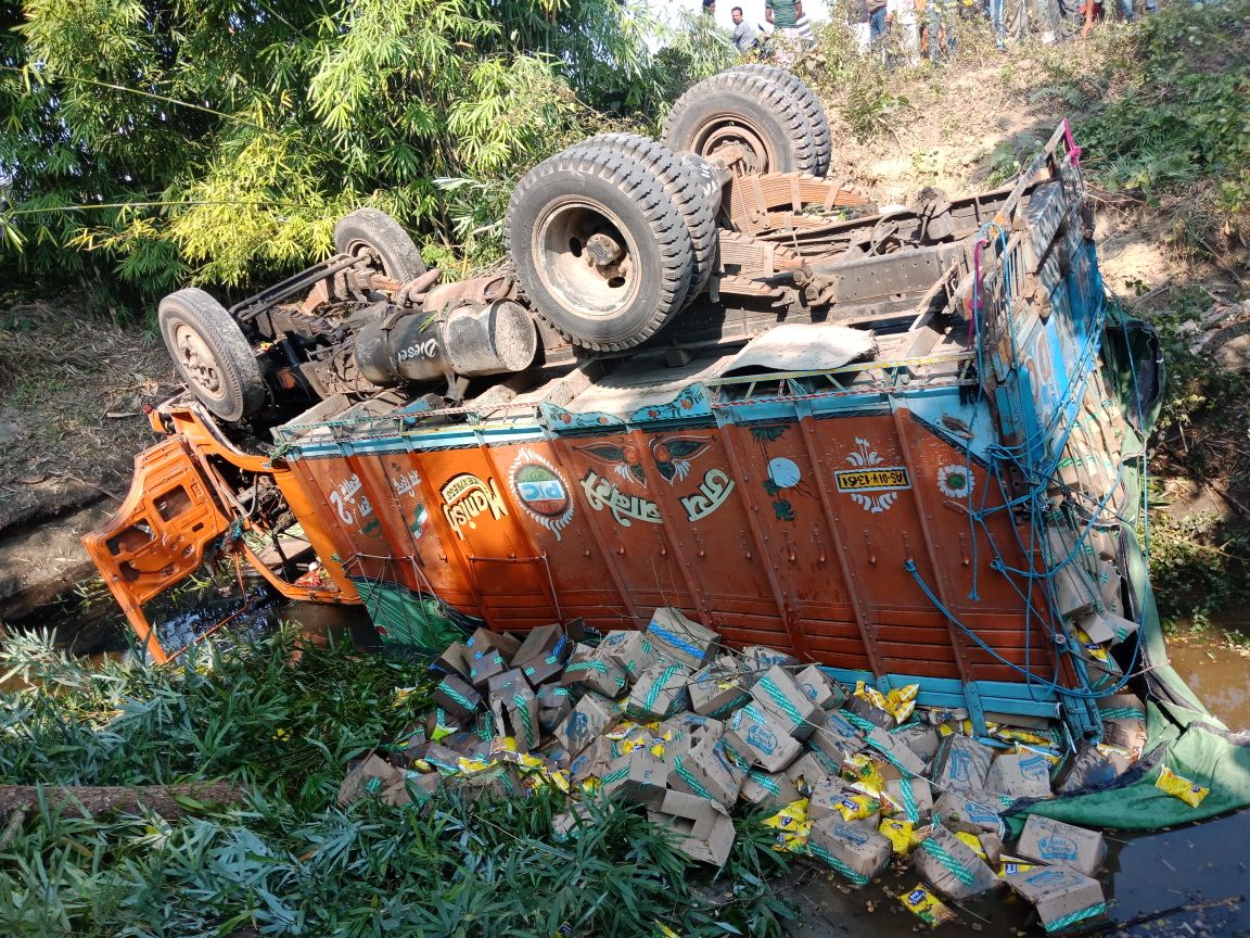 কলগাছিয়া, ২৪ ডিচেম্বৰ: সৰভোগত ৩১ নং ৰাষ্ট্ৰীয় ঘাই পথৰ কাষত নিয়ন্ত্ৰণ হেৰুৱাই দ খালত পৰিল মাল ভৰ্তি ট্ৰাক। এই দুৰ্ঘটনাত ট্ৰাকখনৰ ড্ৰাইভাৰ, হেণ্ডিমেন গুৰুতৰভাৱে আহত হয়। আহত দুয়োকে চিকিৎসালয়ত ভৰ্তি কৰা হৈছে। অৱশ্যে এই দুৰ্ঘটনাৰ পৰা আন কেইবাজন পথ যাত্ৰীৰ কথমপি জীৱন ৰক্ষা পৰে।