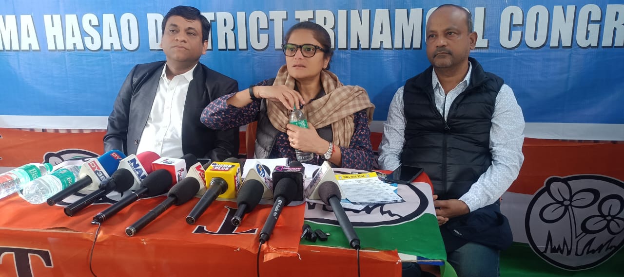 বৃহস্পতিবাৰে হাফলঙৰ জিলা তৃণমূল কংগ্ৰেছৰ কাৰ্যালয়ত অনুষ্ঠিত সংবাদতমেলত বিজেপিক ক্ষুৰধাৰ সমালোচনা কৰি সুস্মিতা দেৱে কয় যে, আচিং জেমেৰ নেতৃত্বত ডিমা হাচাওত তৃণমূল কংগ্ৰেছে হৈছে বিজেপিৰ একমাত্ৰ প্ৰতিদ্বন্দি। দীৰ্ঘদিন ধৰি পাৰ্বত্য জিলাখনত তৃণমূল কংগ্ৰেছে বিৰোধিৰ ভুমিকা গ্ৰহণ কৰি আছে। কংগ্ৰেছক চোকা সমালোচনা কৰি সুস্মিতা দেৱে কয় যে, আজি কংগ্ৰেছ দলটো দুৰ্বল হোৱাৰ একমাত্ৰ কাৰণ হৈছে তেওঁলোকৰ নেতৃত্ব। কংগ্ৰেছৰ তৃণমূল পৰ্যায়ৰ কৰ্মী সকলোক প্ৰৱঞ্চনা কৰি নেতা সকলে বিজেপিৰ লগত গোপন মিতিৰালি ৰক্ষা কৰাৰ বাবে আজি কংগ্ৰেছ নিঃচিহ্ন হৈছে।