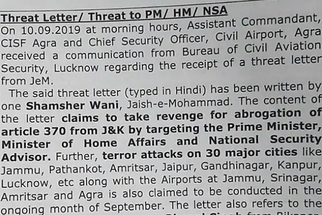 জম্মু, পাঠানকুট, অমৃতচৰ, জয়পুৰ, কানপুৰ, গান্ধীনগৰ, লক্ষ্নৌ আদিকে ধৰি ৩০ খন চহৰ আৰু জম্মু, শ্ৰীনগৰ, অমৃতচৰ, আগ্ৰা আদি বিমানবন্দৰত কূটাঘাট সংঘটিত কৰাৰ সম্ভাৱনা আছে বুলি জানিবলৈ দিয়ে সূত্ৰটোৱে।