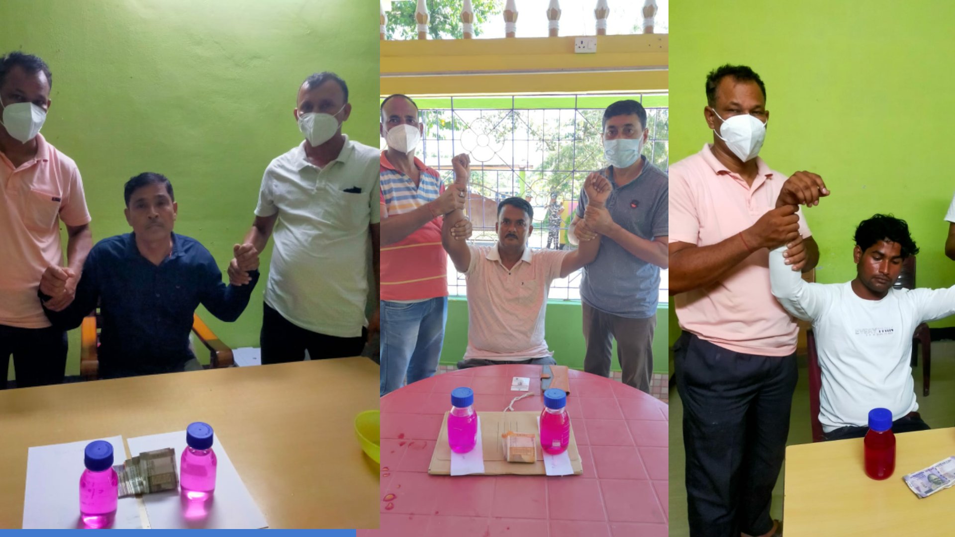 গুৱাহাটী, ৩০ ছেপ্টেম্বৰ, ২০২৩ : দুৰ্নীতিগ্ৰস্ত চৰকাৰী কৰ্মচাৰীৰ বিৰুদ্ধে অব্যাহত আছে দুৰ্নীতি নিবাৰক শাখাৰ অভিযান। পুনৰ দুৰ্নীতি নিবাৰক শাখাৰ জালত পৰিল দুজন দুৰ্নীতিগ্ৰস্ত চৰকাৰী কৰ্মচাৰী। উৎকোচ লৈ হাতে-লোটে ধৰা পৰিল দুজন চৰকাৰী কৰ্মচাৰীৰ (Government Employee Attested) লগতে এজন দালাল। এজন লাট মণ্ডলে ৫ হাজাৰ টকা উৎকোচ লৈ আৰু এজনে ৩ হাজাৰ টকা উৎকোচ লৈ হাত দাঙি ফটো উঠিলে। লাট মণ্ডল দুজনৰ লগতে ফটো উঠিলে এজন দালালেও।