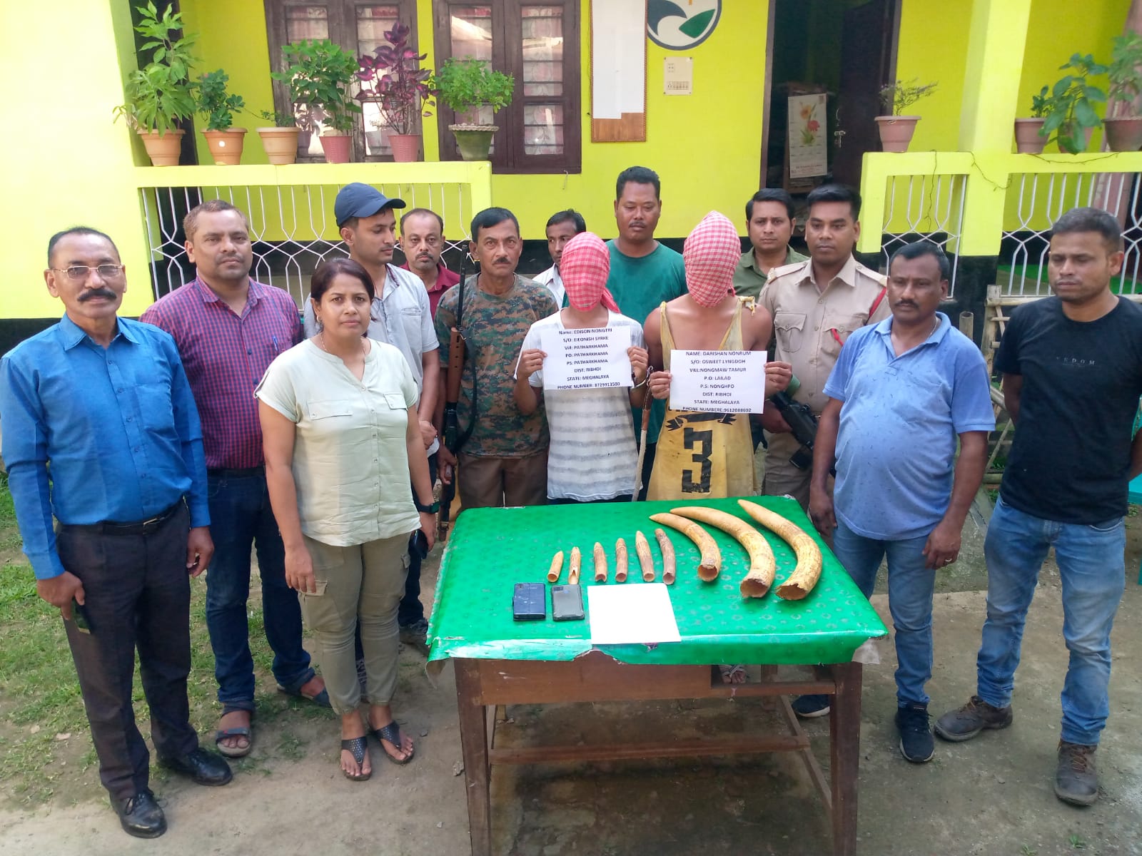 বন বিভাগে জব্দ কৰা ৯ টা হাতীৰ দাঁতৰ ওজন ৬.১২ কিলোগ্রাম বুলি জানিবলৈ দিয়ে বন বিভাগে। হাতীৰ দাঁতৰ লগতে মেঘালয়ৰ দুজন লোকক আটক কৰে বন বিভাগে। মেঘালয়ৰ লোক দুজনৰ নাম এডিচন নংত্ৰী আৰু দাৰিচান ননৰাম।