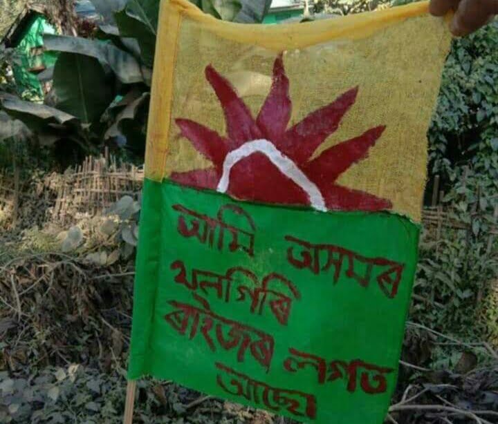 পতাকাত লিখি থৈ যায় ” আমি অসমৰ থলগিৰী ৰাইজৰ লগত আছোঁ” ।